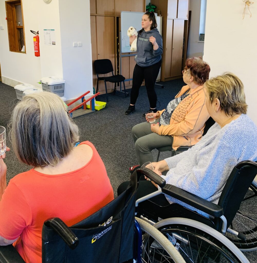 Dne 2. 4. zavítala do domova pro seniory Světlo v Drhovli Veronika Kůrková z Mnichova u Strakonic, aby nám představila nepříliš známou sportovní disciplínu nazývanou Králičí Hop. Králíci pod vedením své trenérky nám ukázali malé ale i velké skoky přes překážky. Dozvěděli jsme se, že Česká republika patří mezi nejúspěšnější země v tomto sportu. Klienti se tedy mohli nejen pokochat skákáním přes překážky, ale mohli si králíky pohladit a dokonce i pochovat. Návštěva paní Veroniky s jejími ušáky byla pro naše klienty velmi příjemná a všichni si návštěvu králíčků užili.
