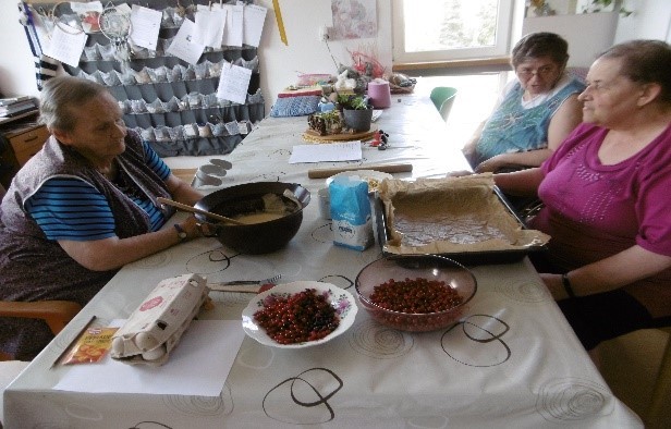 Každé pondělí odpoledne se scházíme v aktivizační dílně na kroužku vaření a pečení. Společně si vždy připravíme nějakou dobrotu na přání klientů. Pekli jsme štrůdl, dále pak rybízový i borůvkový koláč. Borůvky i rybíz jsme si nasbírali na naší zahradě. Také jsme dělali bramboráky, škvarkové placky, celerovou, mrkvovou, hermelínovou pomazánku a v neposlední řadě oblíbené topinky s masovo – zeleninovou směsí. Všichni si pokaždé pochutnají a těší se na další kulinářský zážitek.