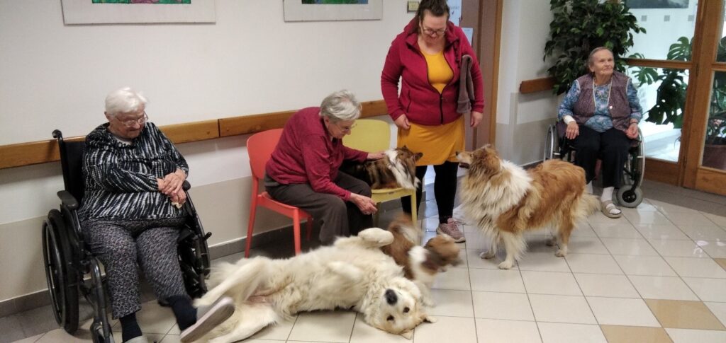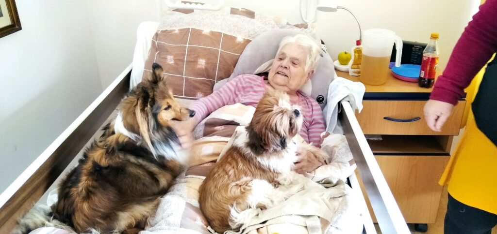 Také náš domov využívá této terapie pro své klienty. Jedenkrát měsíčně nás navštěvuje paní se čtyřmi terapeutickými pejsky, které si mohou klienti pohladit, pomazlit či dát pamlsek. U imobilních klientů lze pejska položit do lůžka. Na tuto návštěvu se vždy všichni těšíme.