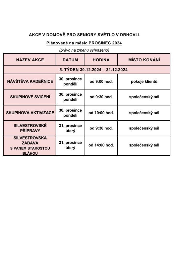 DRHOVLE – PŘEHLED AKCÍ NA MĚSÍC PROSINEC