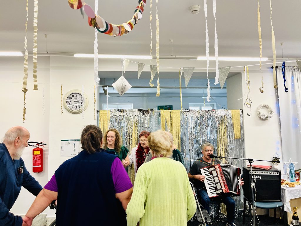 Ani v Domově pro seniory v Drhovli jsme nezapomněli pořádně oslavit konec roku. Po dopoledních přípravách bohatého občerstvení jsme se sešli odpoledne ve slavnostně vyzdobeném společenském sále. A protože konec roku má být veselý, pozvali jsme si znovu starostu obce Drhovle pana Jiřího Bláhu. Ten nám popřál do nového roku, společně si s námi připil na zdraví a poté vykouzlil velmi příjemnou atmosféru svým hraním a zpěvem. Kdo chtěl, mohl si zatancovat, či jen tak posedět a společně si zazpívat a užít si poslední hodiny končícího roku 2024. Všem přejeme krásný Nový rok 2025 a hlavně hodně zdraví a spokojenosti.