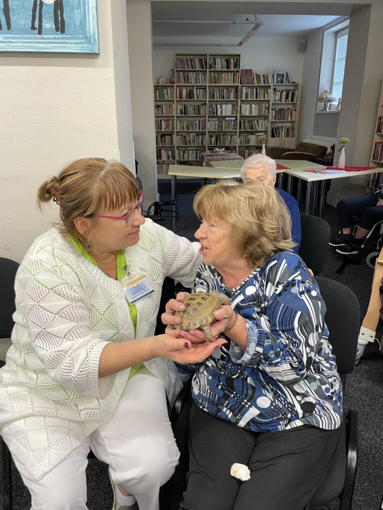 V pondělí k nám do Drhovle zavítala návštěva ze ZOO Tábor. Na přednášce se klienti dozvěděli informace o tom, jak to v takové instituci chodí. Zjistili jsme jaká je historie této zoo a jak je práce na takovém místě náročná. Nesměly chybět ani zajímavosti o zvířatech, která se v zoologické zahradě v Táboře chovají. Vedoucí ošetřovatelka Bc. Eva Nemravová nám taktéž přivezla ukázat dvě krásné želvy zelenavé, které si mohli klienti pohladit i pochovat. Totéž platilo o dalších návštěvnících a to třech morčatech domácích, která se taktéž nechala od klientů hladit a chovat. Klienti odcházeli plni radosti a úsměvů. Tímto děkujeme za návštěvu a těšíme se na viděnou.