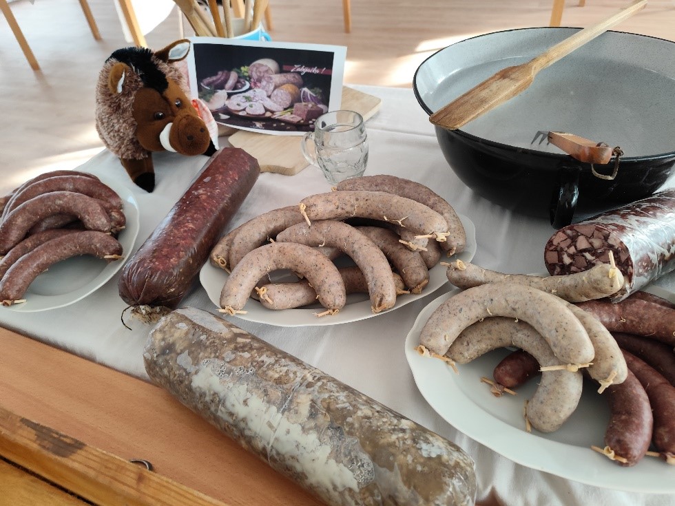 V úterý 28. ledna jsme pro naše klienty připravili v rámci domova odpoledne s harmonikou a ochutnávkou již zmíněných specialit. Podávala se kroupová polévka, jitrničky, jelítka, ovar a tlačenka s čerstvě nastrouhaným křenem. Nechybělo ale ani prasátko v podobě masky, které rejdilo sálem. Na vše dohlížel pan řezník. Mastné pusy a úsměv na tvářích hovořily za vše.