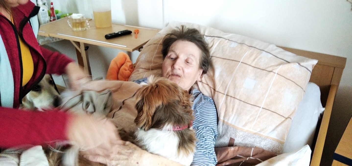 Také náš domov využívá této terapie pro své klienty. Jedenkrát měsíčně nás navštěvuje paní se čtyřmi terapeutickými pejsky, které si mohou klienti pohladit, pomazlit či dát pamlsek. U imobilních klientů lze pejska položit do lůžka. Na tuto návštěvu se vždy všichni těšíme.
