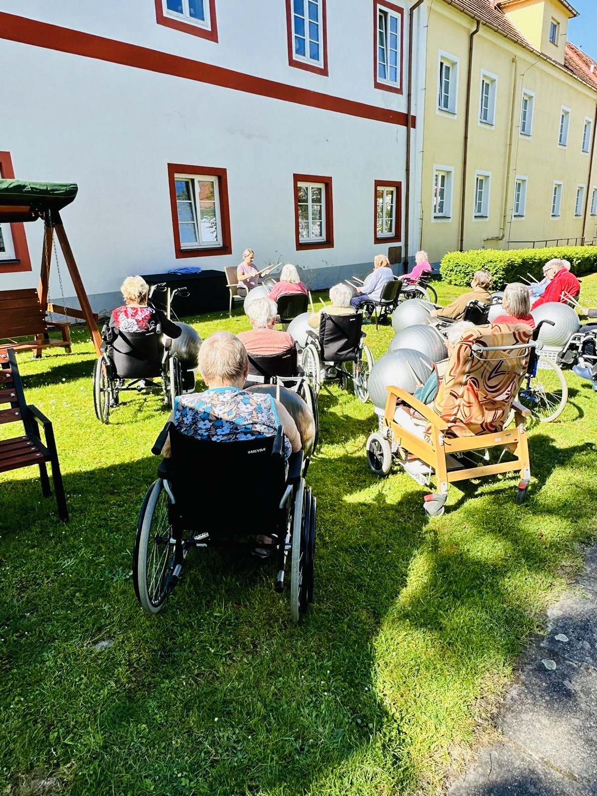 V drhovelském domově je úterní dopoledne pravidelně věnováno cvičební aktivitě zvané DrumFit. Tato aktivita je mezi klienty velmi oblíbená a pokud se spojí i s krásným počasím jako dnes, je to ideální “bubnovací” dopoledne.