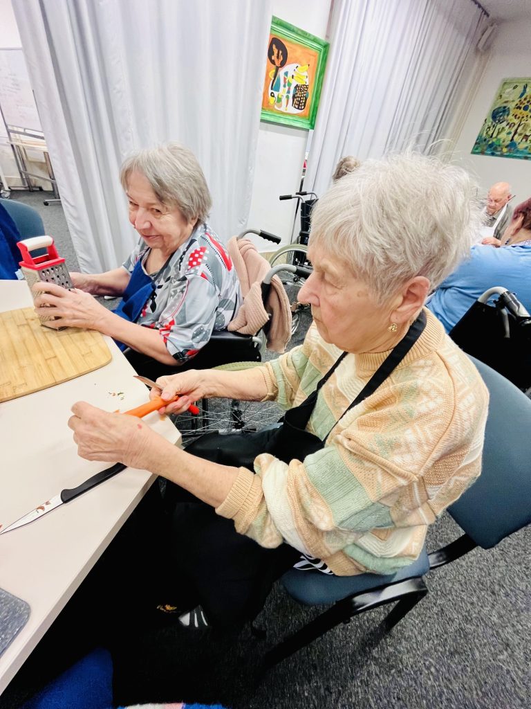Dnes jsme si zpříjemnili den společným pečením mrkvového dortu. Den mrkvového dortu totiž slavíme 3. února. Klienti se zapojili do přípravy – strouhali mrkev, míchali těsto a nechybělo ani sdílení vzpomínek na jejich domácí pečení. Domovem se linula krásná vůně pečeného moučníku. Na dortu si pochutnáme zítra v naší odpolední kavárničce.
