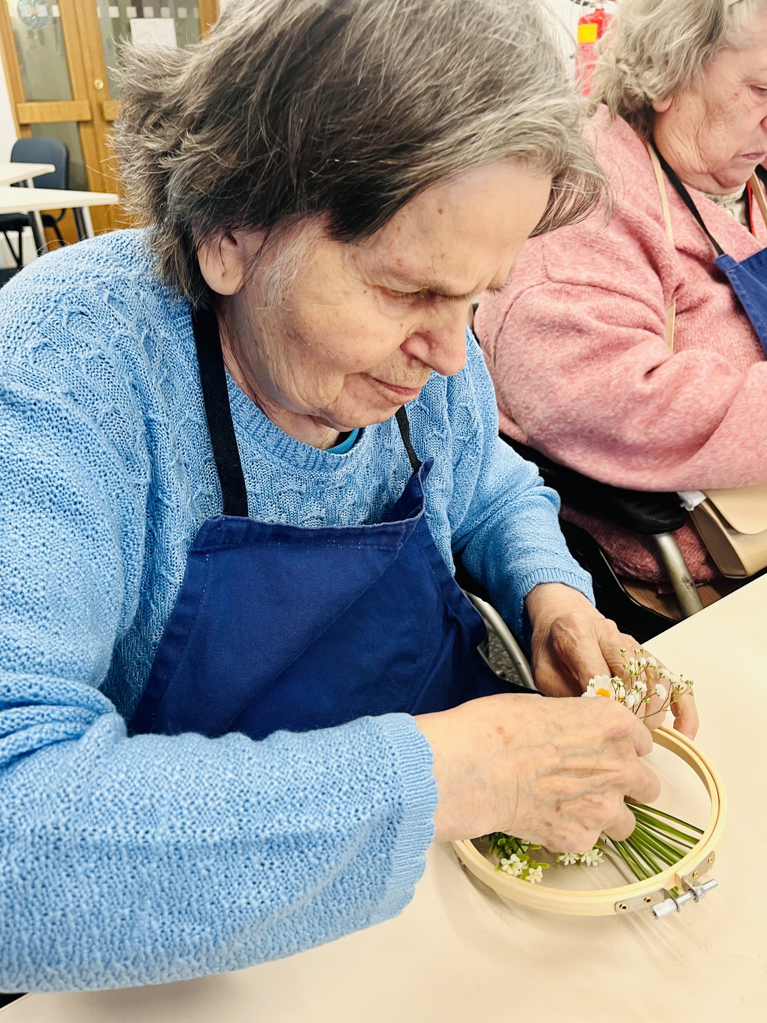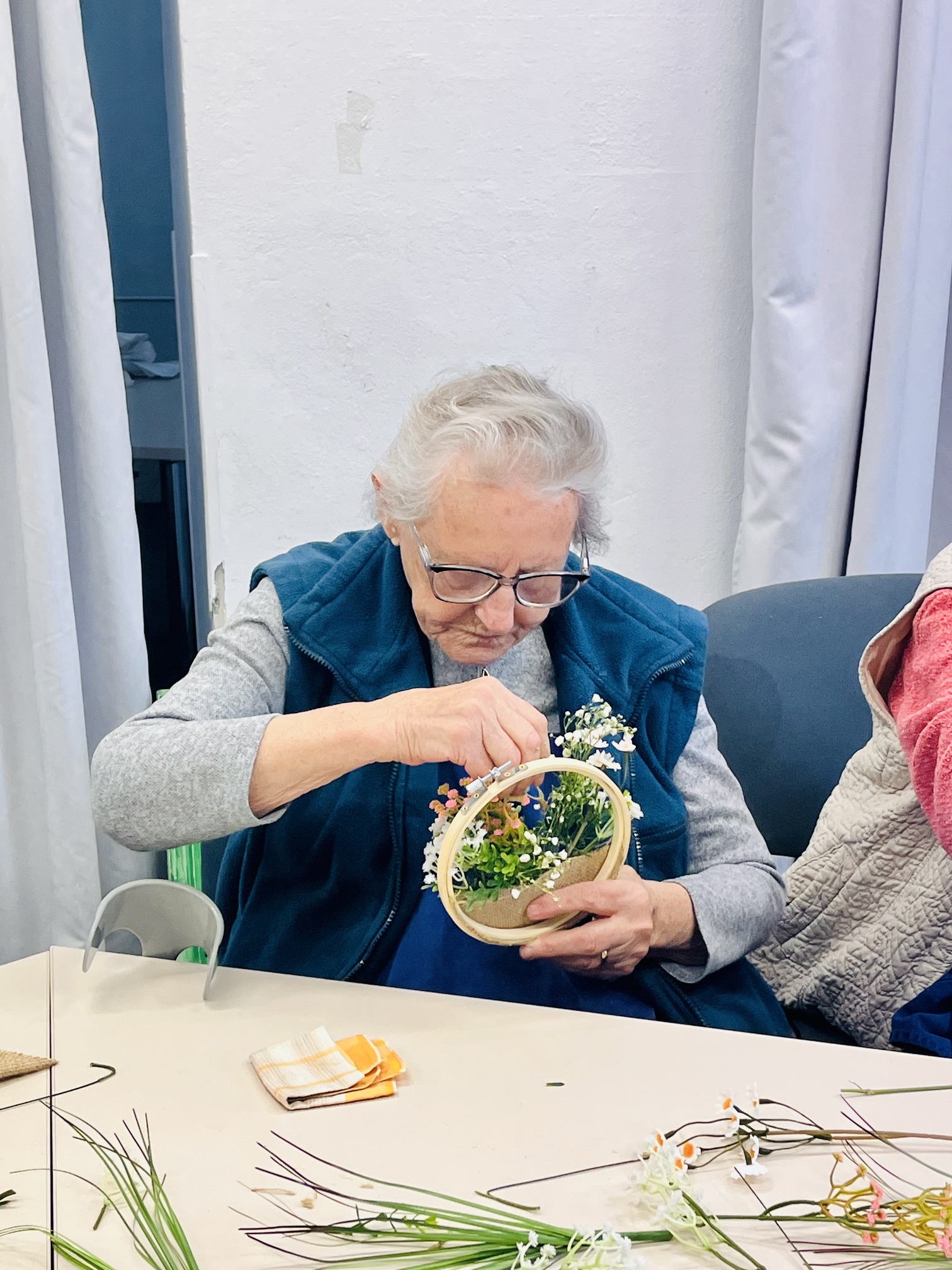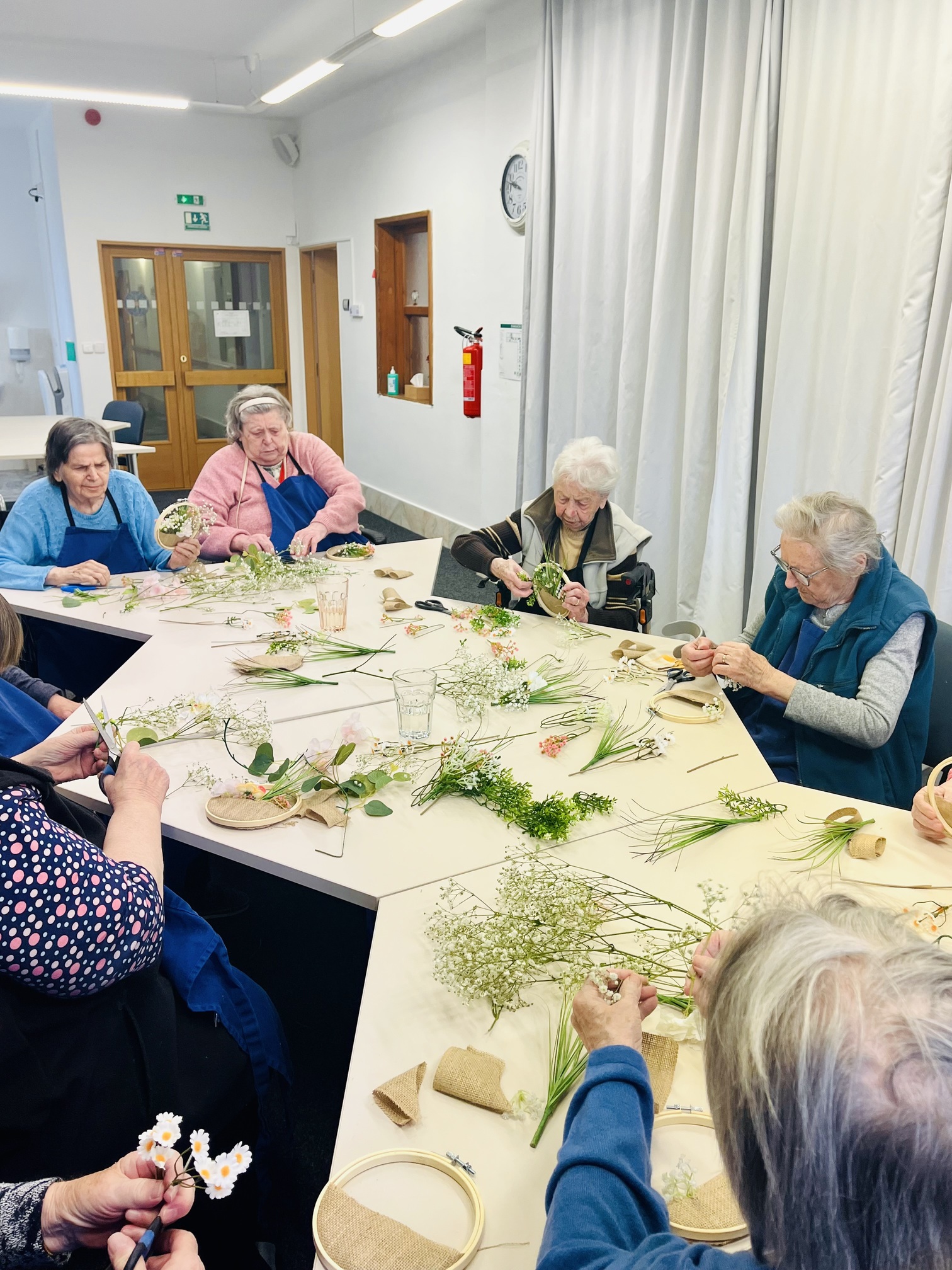 Jaro už pomalu přináší do našeho domova více světla a tepla, proto jsme dnes pustili do tvoření jarních dekorací. Tato společná aktivita podpořila nejen kreativitu našich klientů, ale i jejich jemnou motoriku a radost z vzájemně stráveného času. Klienti vytvořili jednoduché květinové dekorace do dřevěných obloučků, které už nyní zdobí naší chodbu u společenského sálu.