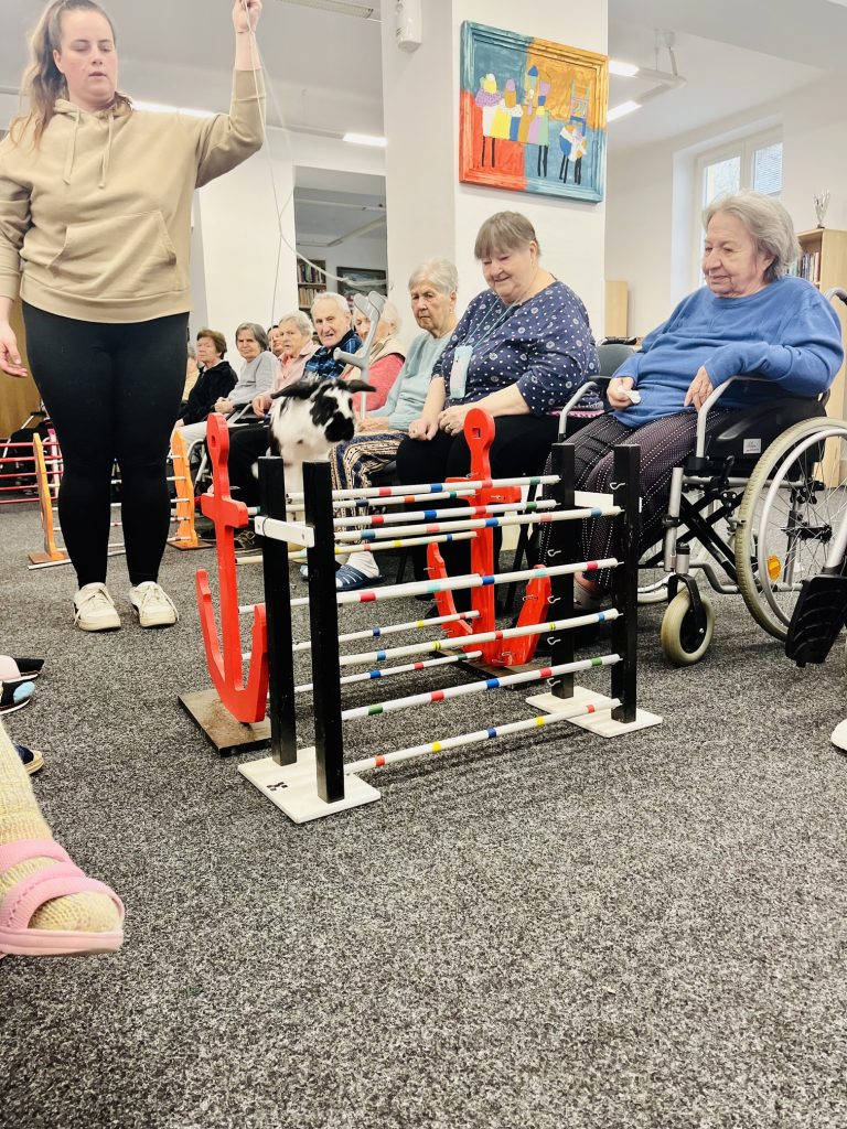 Ve čtvrtek 16. dubna jsme u nás přivítali slečnu Veroniku Kůrkovou, která nám společně se svými králíky představila netradiční a velmi zajímavou disciplínu – králičí hop. Měli jsme tak jedinečnou příležitost vidět, co všechno se mohou králíci naučit. Slečna Kůrková nám nejprve přiblížila, co králičí hop obnáší, jak probíhá trénink a jak důležitý je vztah mezi chovatelem a zvířetem. Následně nám její šikovní králičí svěřenci předvedli samotné skoky přes překážky. Celé setkání proběhlo ve velmi příjemné atmosféře.
