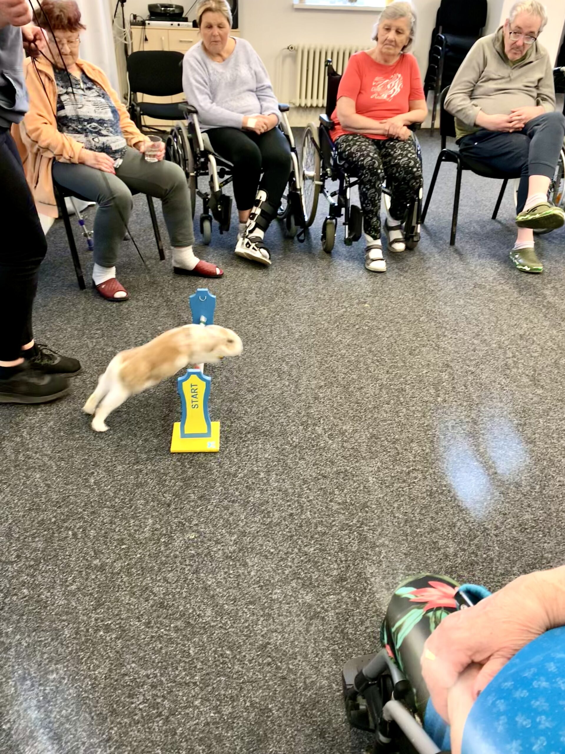 Dne 2. 4. zavítala do domova pro seniory Světlo v Drhovli Veronika Kůrková z Mnichova u Strakonic, aby nám představila nepříliš známou sportovní disciplínu nazývanou Králičí Hop. Králíci pod vedením své trenérky nám ukázali malé ale i velké skoky přes překážky. Dozvěděli jsme se, že Česká republika patří mezi nejúspěšnější země v tomto sportu. Klienti se tedy mohli nejen pokochat skákáním přes překážky, ale mohli si králíky pohladit a dokonce i pochovat. Návštěva paní Veroniky s jejími ušáky byla pro naše klienty velmi příjemná a všichni si návštěvu králíčků užili.