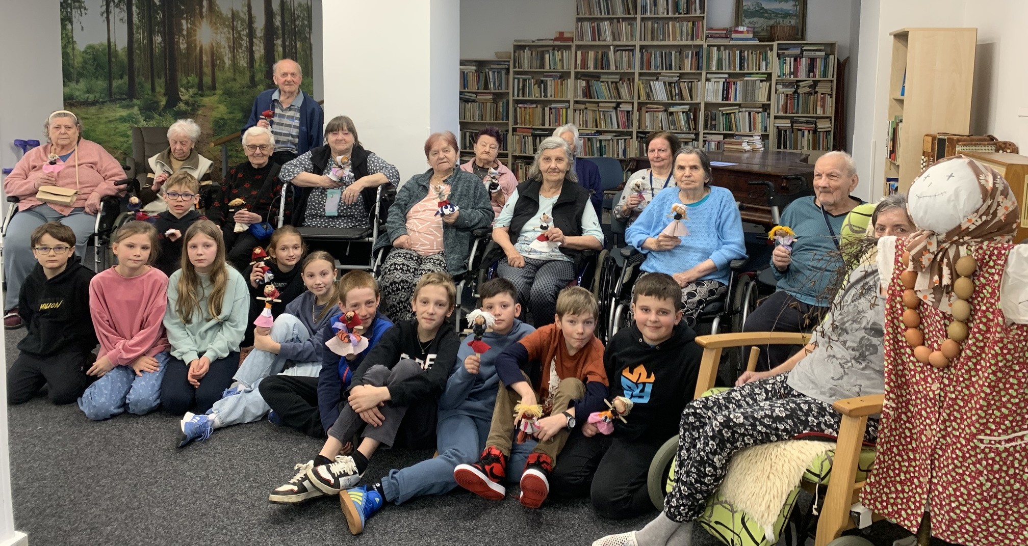 Na začátku setkání nám nejprve děti pod vedením paní učitelky Jitky Průchové a Ivy Spěšné zazpívaly tři písničky o „Smrtce“ Moreně a o jaru. Tím nás všechny uvedly do tématu dnešního setkání a už začalo se tvořit. Při práci se děti postupně i rozpovídaly a nakonec z toho bylo velmi příjemné setkání napříč generacemi. Na závěr nás děti obdarovaly milou jarní pozorností.