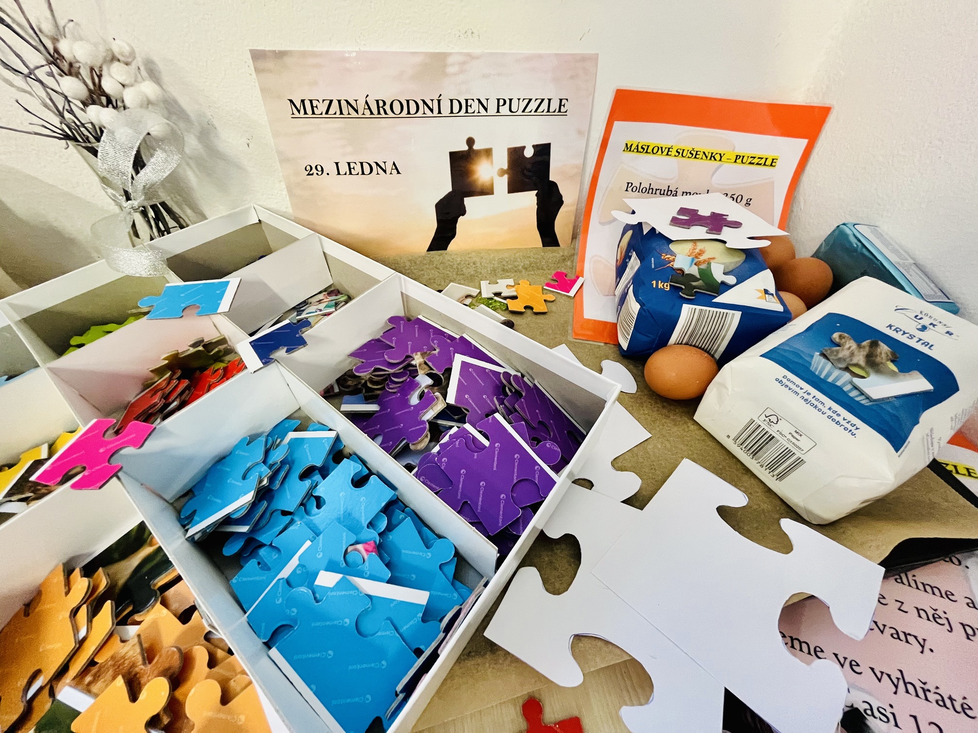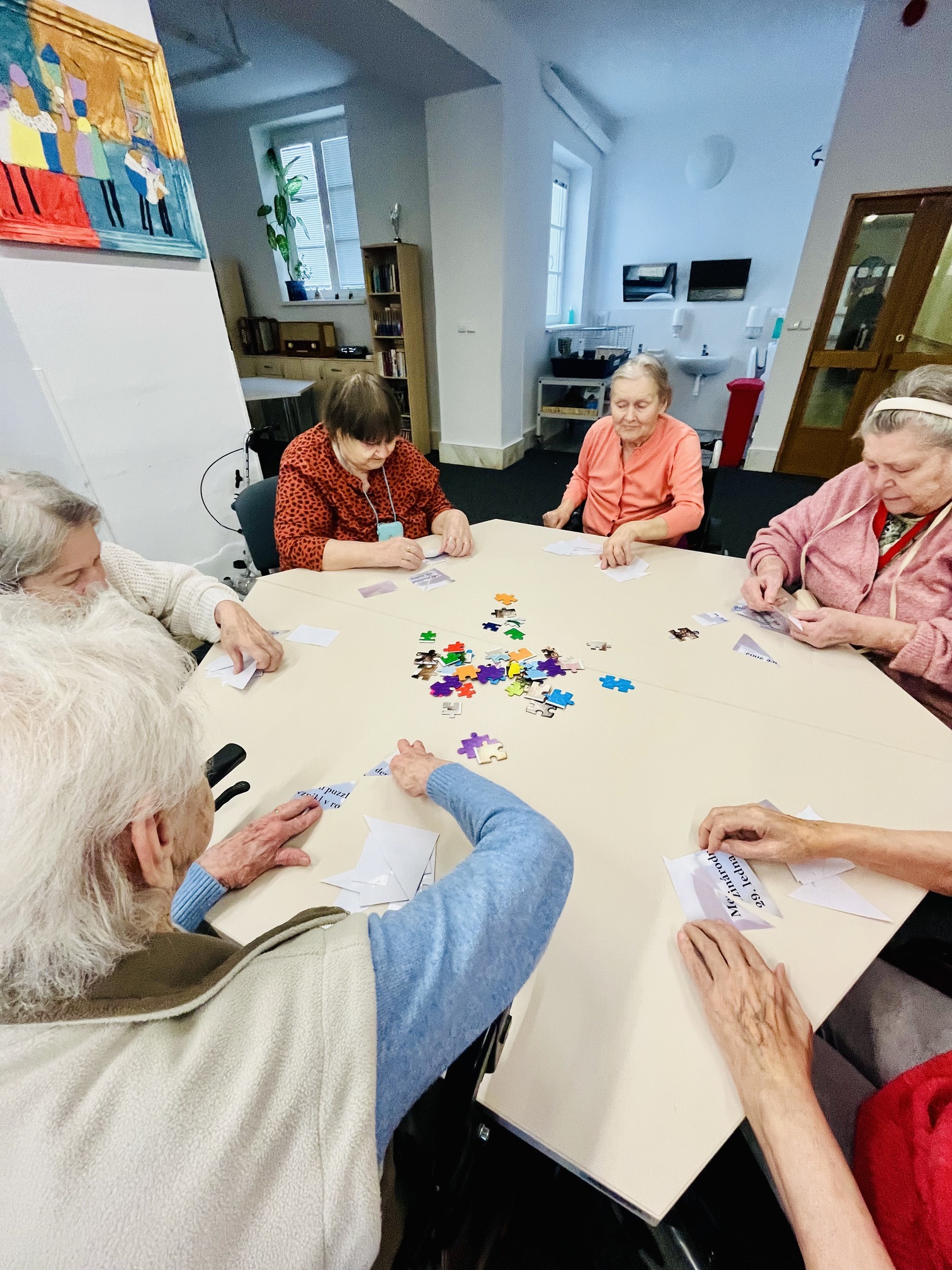 Dnes, 29. ledna, jsme v našem domově oslavili Mezinárodní den puzzle, který vznikl v 90. letech 20. století z iniciativy nadšenců, kteří mají zálibu v hlavolamech a v zábavě při jejich řešení. Dnes puzzle pomáhají nám všem – udržují naši mysl bystrou, procvičují soustředění a přinášejí radost z každého dílku, který zapadne na své místo. Klienti si dnes zkusili poskládat různé obrázky a dokonce si i upekli puzzle jako sušenku.