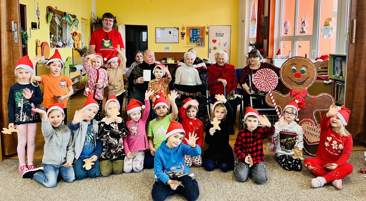 Ve čtvrtek 18. prosince jsme s našimi klienty navštívili Mateřskou školu v Miroticích. Klienti si pro děti připravili vánoční dárek v podobě postavy Perníčka s malým příběhem. Děti nám zase přichystaly překvapení v podobě krátkého vystoupení a předaly našim klientům vlastnoručně vyrobené dárky. Nechybělo ani vánoční cukrovíčko 🫶.