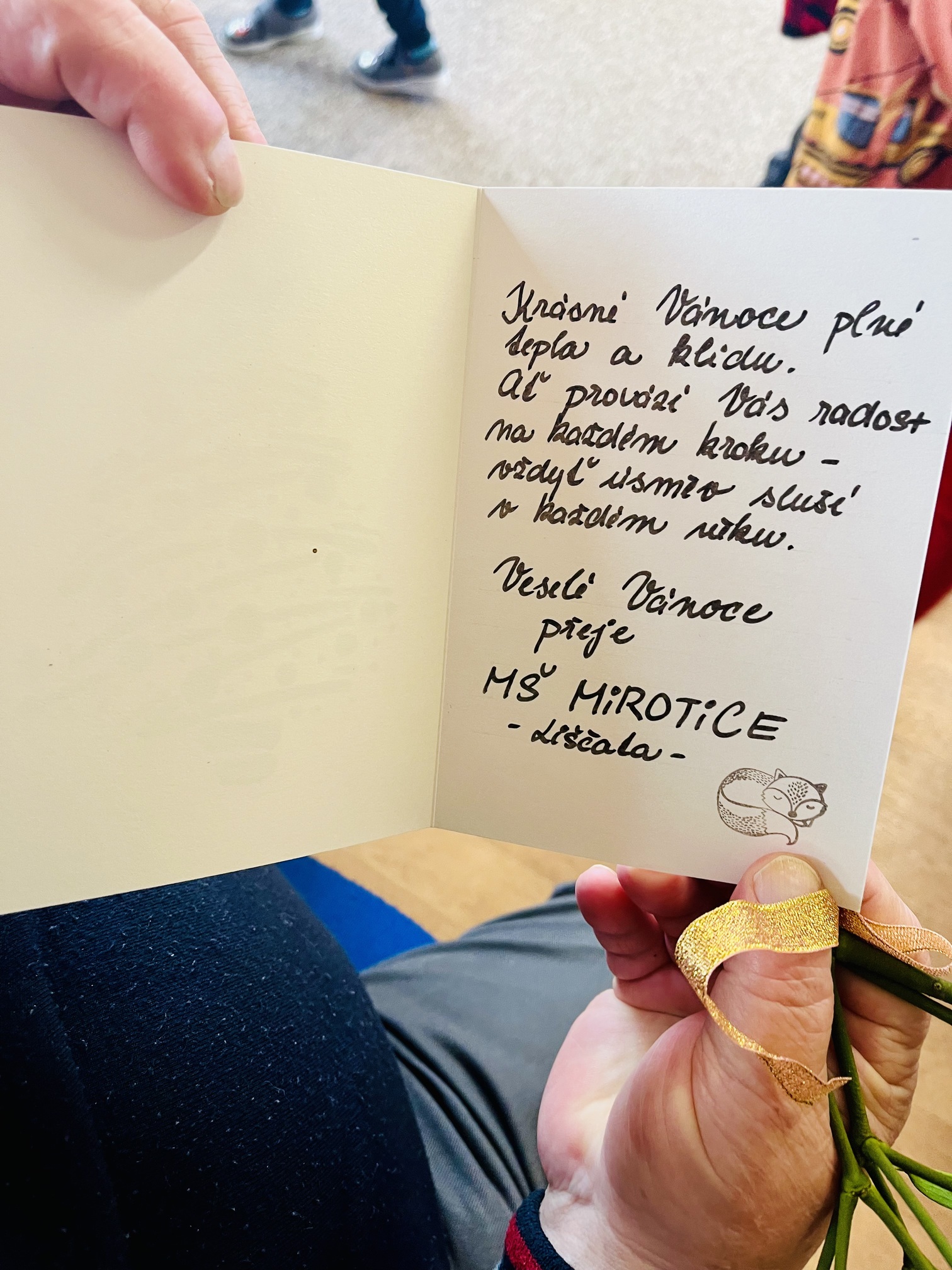 Ve čtvrtek 18. prosince jsme s našimi klienty navštívili Mateřskou školu v Miroticích. Klienti si pro děti připravili vánoční dárek v podobě postavy Perníčka s malým příběhem. Děti nám zase přichystaly překvapení v podobě krátkého vystoupení a předaly našim klientům vlastnoručně vyrobené dárky. Nechybělo ani vánoční cukrovíčko 🫶.