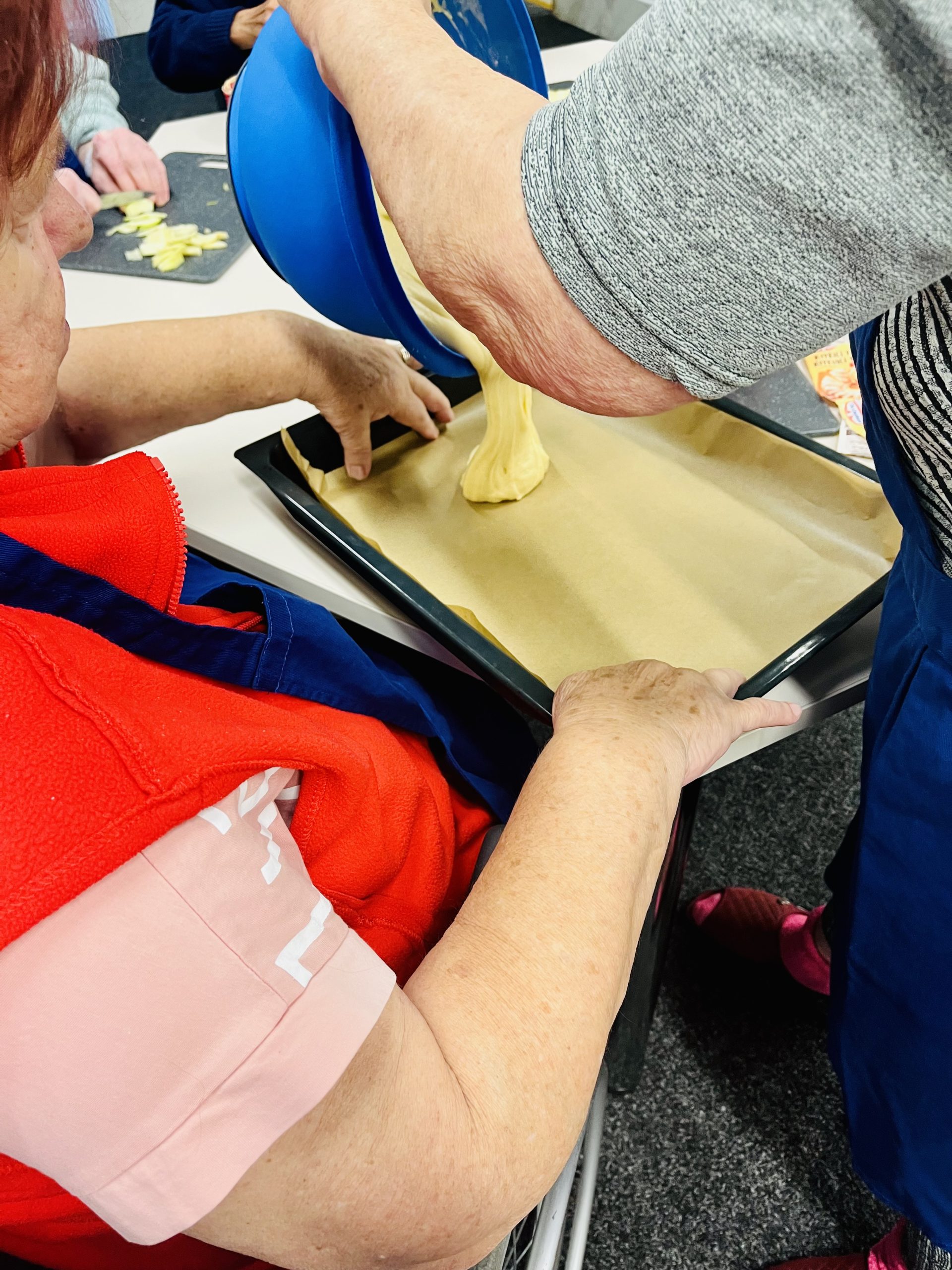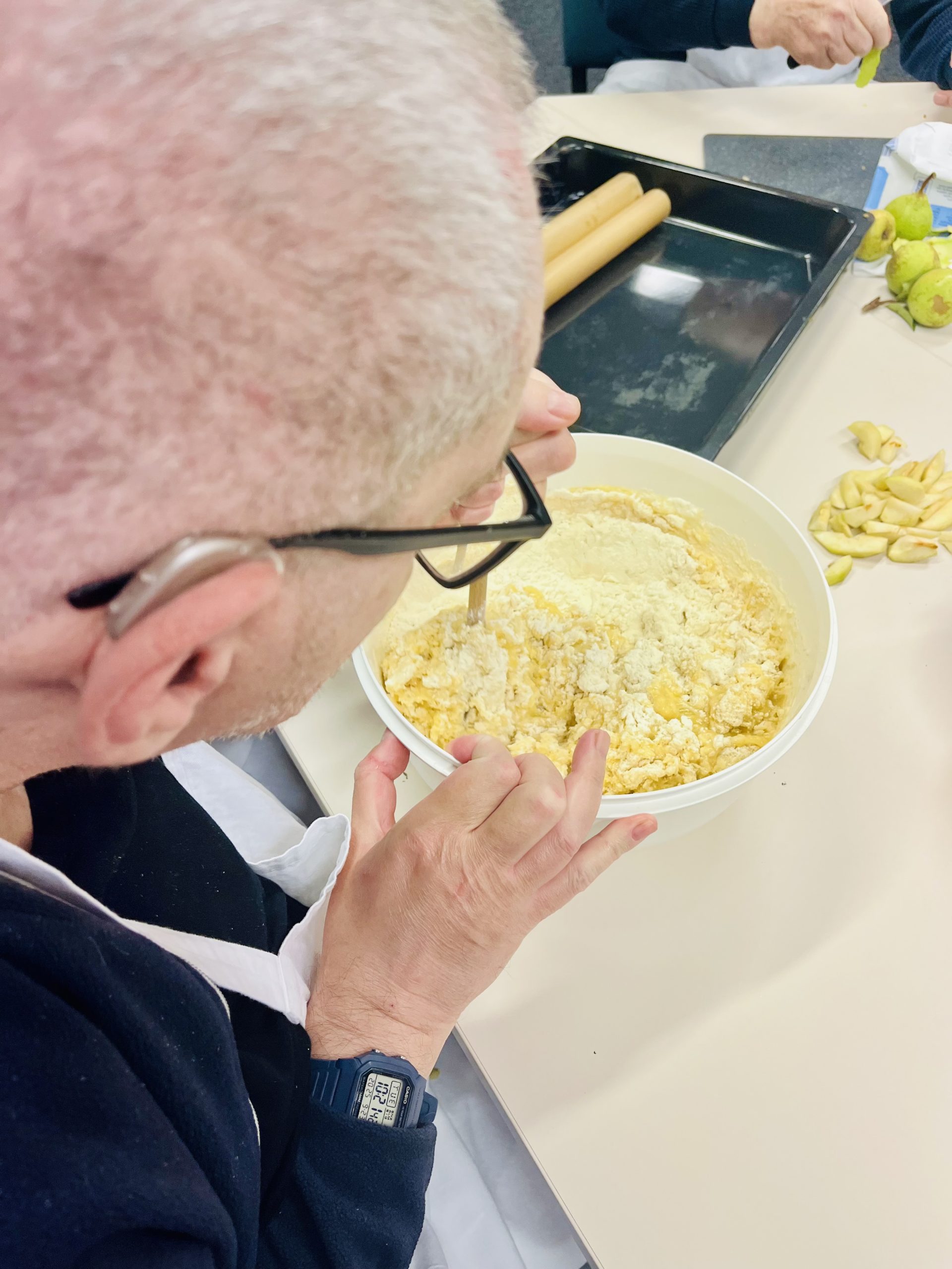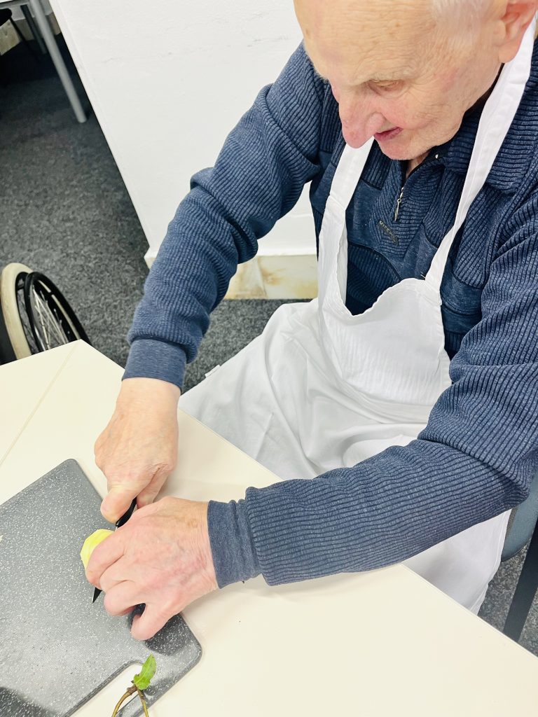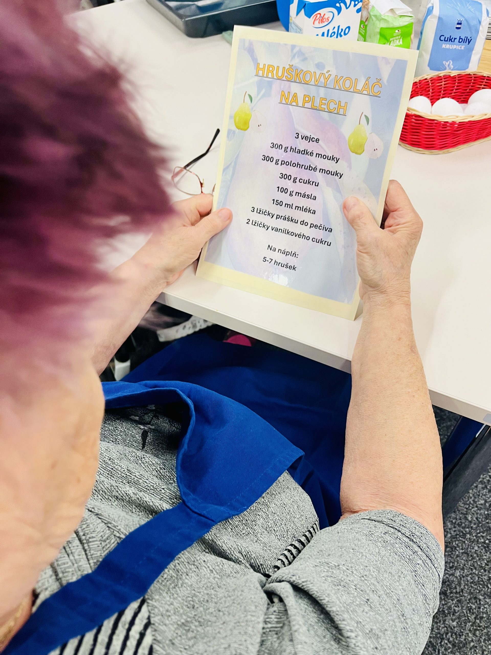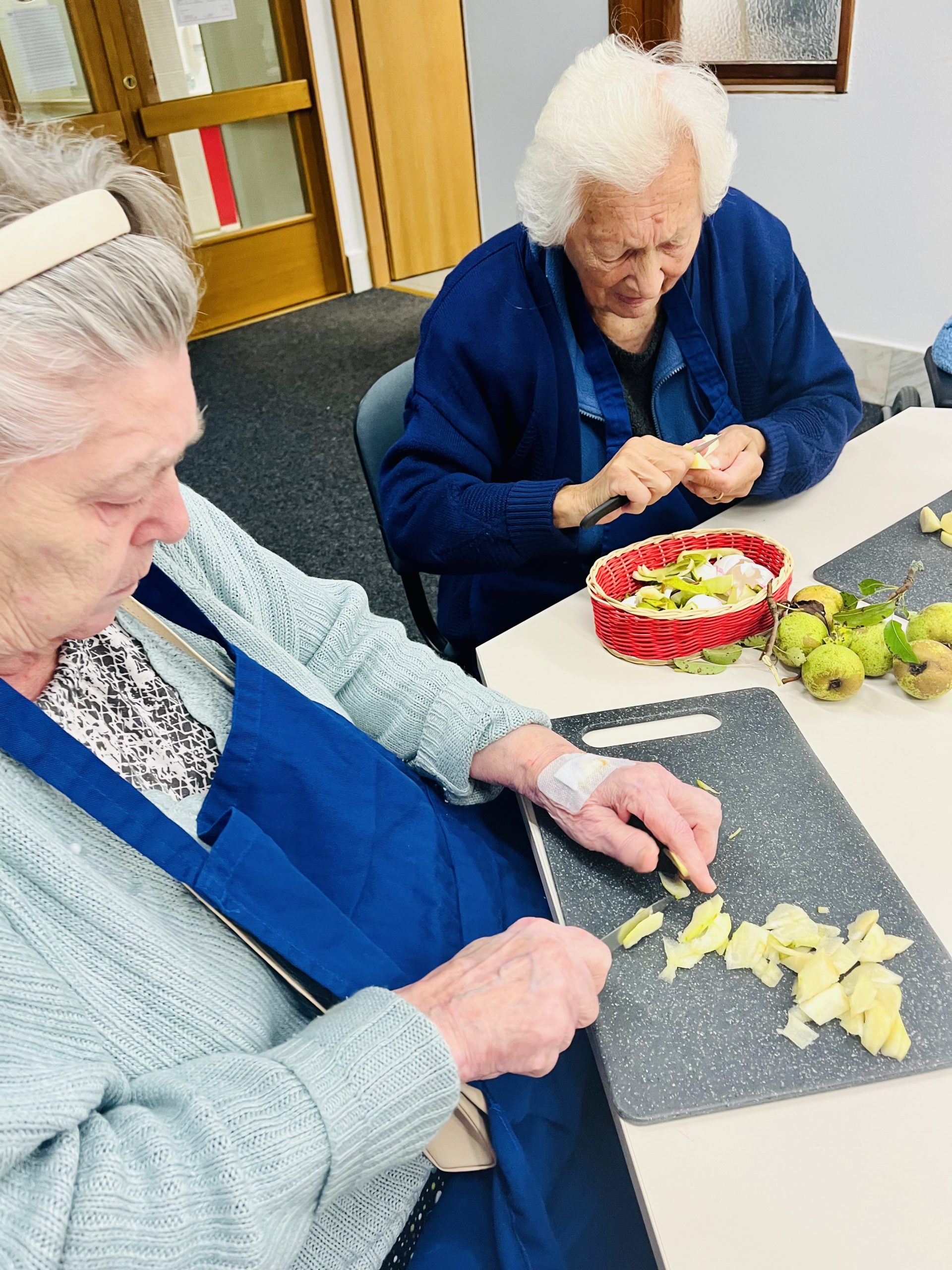 V rámci pravidelného kulinářského koutku jsme se s klienty věnovali přípravě hruškového koláče na plech. Hrušky, které jsme použili, byly z ovocného sadu našeho domova. Všichni přítomní klienti se do příprav aktivně zapojili a výsledek budou moci ochutnat při pravidelné středeční kavárně.