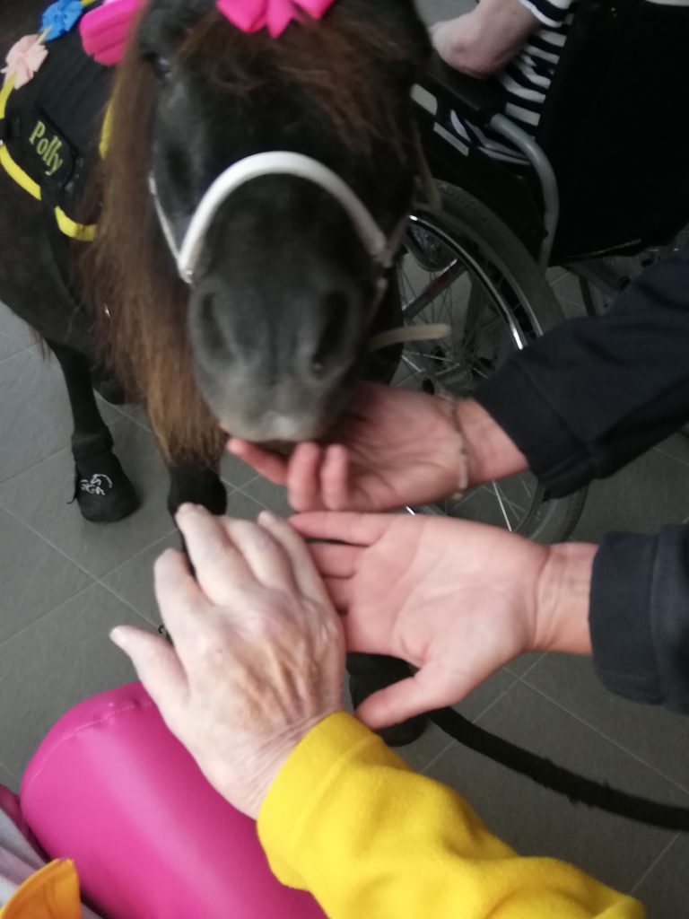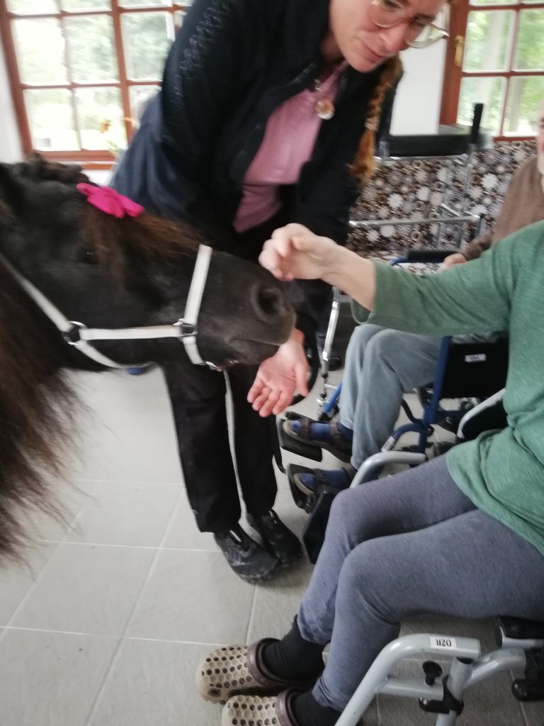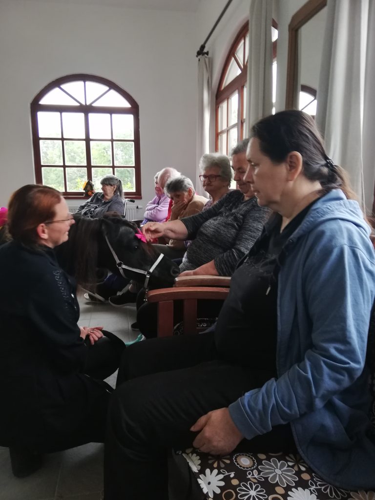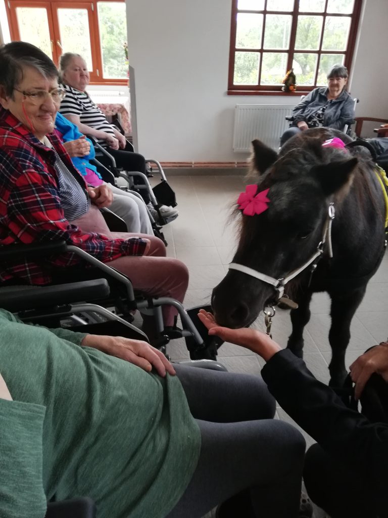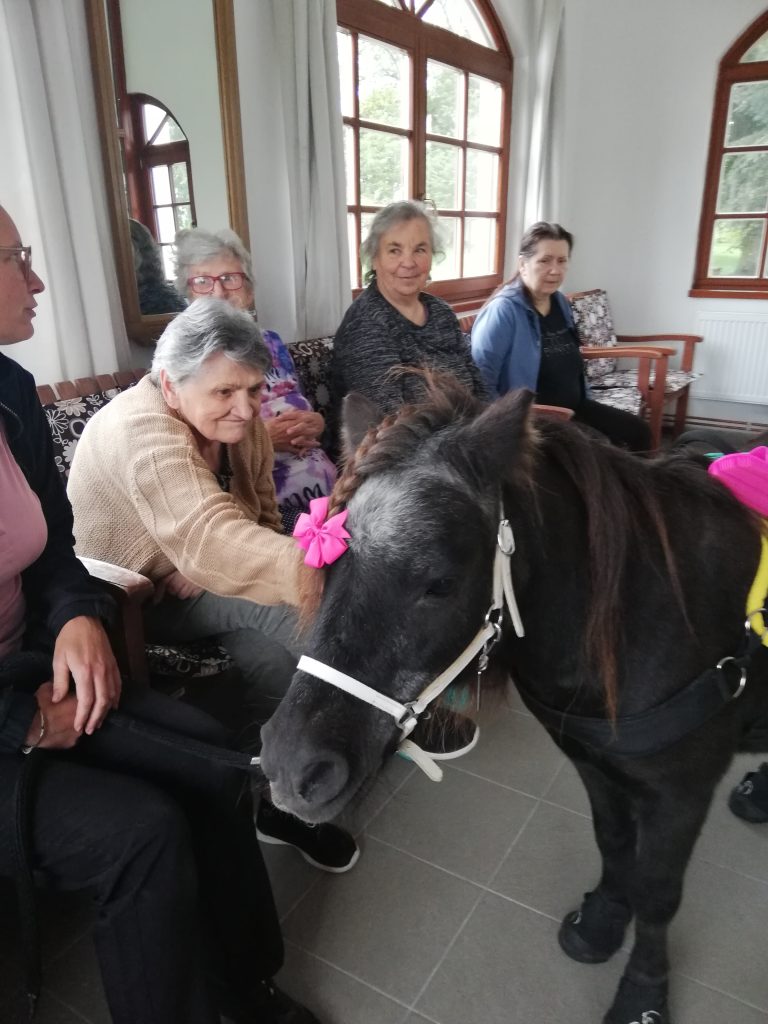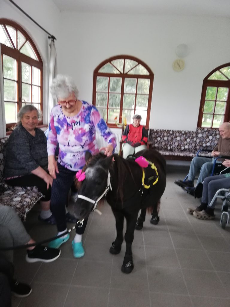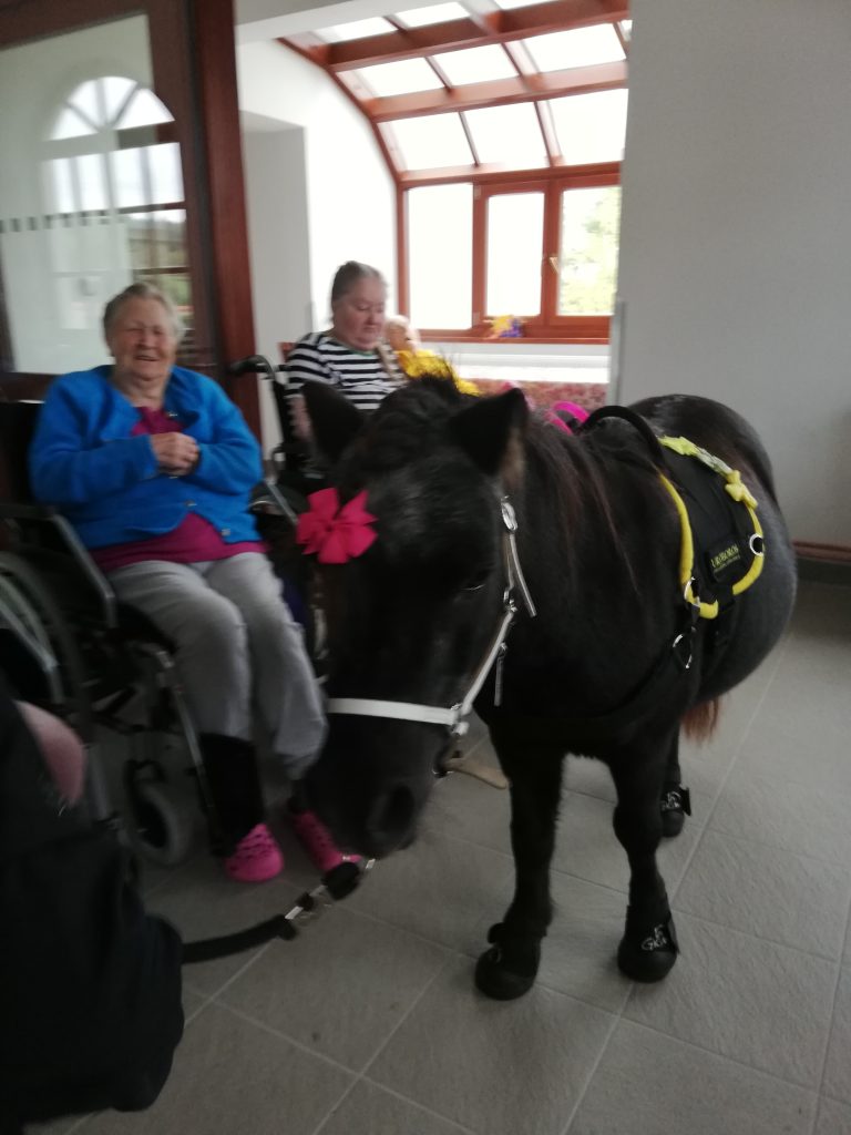 Dne 24. září nás v domově navštívil poník Polly, všichni si užili jeho přítomnost, mohli ho pohladit a potěšit se s ním. Setkání přineslo spoustu radosti a úsměvů.