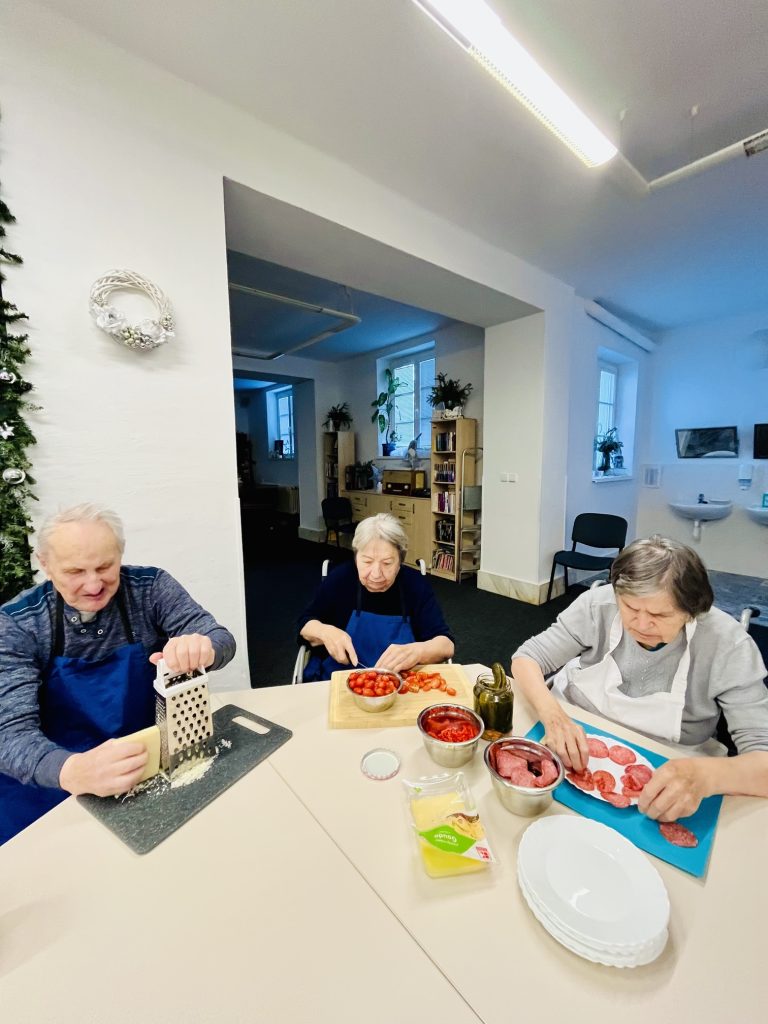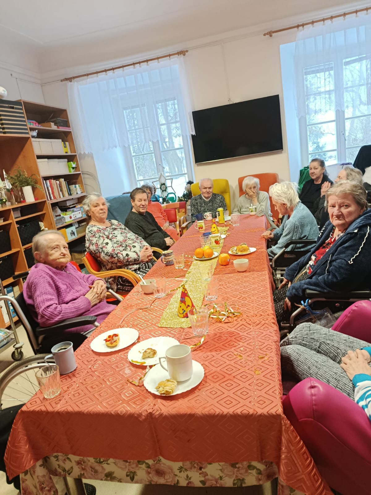 Poslední den roku 2025 se v našem domově pro seniory nesl ve znamení tradic, dobrého jídla a především výborné nálady. Klienti se společně postarali o to, aby stoly byly plné skvělého silvestrovského občerstvení. Při jeho přípravě došlo i na sdílení vzpomínek na rodinné recepty a na to, co kdo připravoval na tu svou oslavu. Odpoledne se konalo silvestrovské posezení u harmoniky, se kterou za námi do domova přišel starosta obce Drhovle, pan Jiří Bláha. Hudba má v našem domově kouzelnou moc a ani tentokrát tomu nebylo jinak. Jakmile zazněly první tóny známých lidových písní, klienti si nenechali ujít příležitost ke zpěvu a někteří i k tanci. Oslava vyvrcholila společným přípitkem a přáním všeho dobrého, klidu, spokojenosti a hlavně pevného zdraví od pana starosty a aktivizačních pracovnic. Silvestr v našem domově ukázal, že radost ze života a chuť se bavit neznají věk.