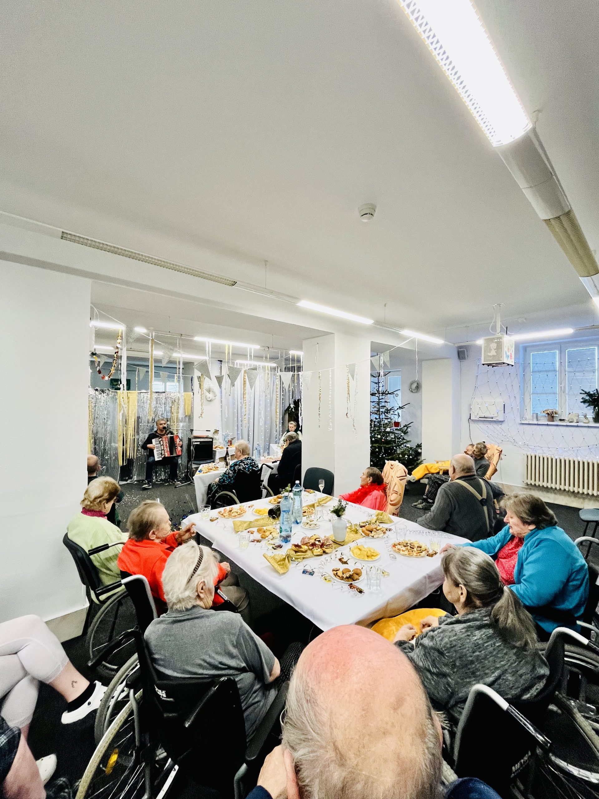 Ani v Domově pro seniory v Drhovli jsme nezapomněli pořádně oslavit konec roku. Po dopoledních přípravách bohatého občerstvení jsme se sešli odpoledne ve slavnostně vyzdobeném společenském sále. A protože konec roku má být veselý, pozvali jsme si znovu starostu obce Drhovle pana Jiřího Bláhu. Ten nám popřál do nového roku, společně si s námi připil na zdraví a poté vykouzlil velmi příjemnou atmosféru svým hraním a zpěvem. Kdo chtěl, mohl si zatancovat, či jen tak posedět a společně si zazpívat a užít si poslední hodiny končícího roku 2024. Všem přejeme krásný Nový rok 2025 a hlavně hodně zdraví a spokojenosti.