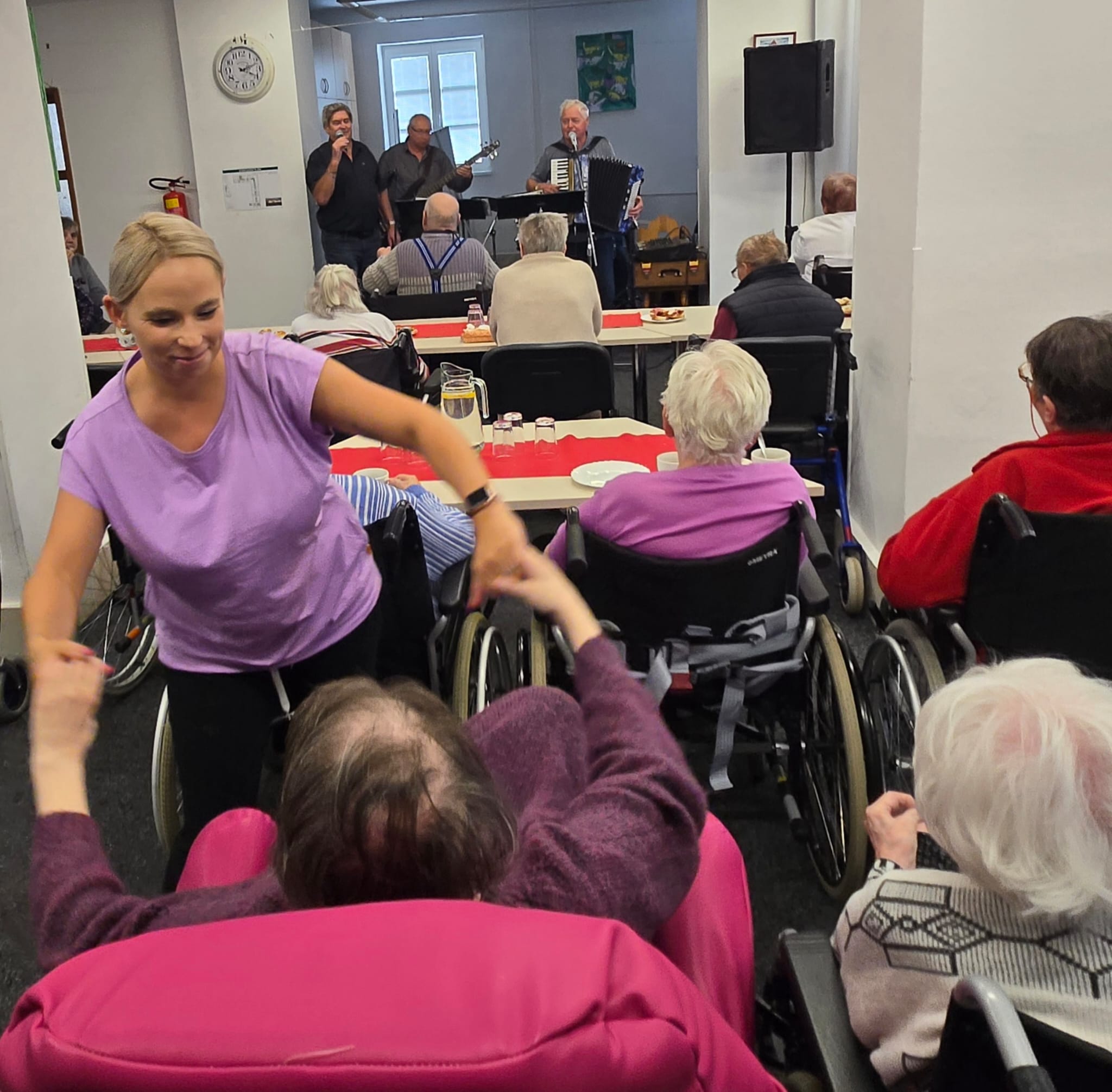 Dne 29. září se u nás v domově konala tradiční Václavská zábava. Přijel nás potěšit náš oblíbený muzikant pan Vladimír Pavelka se svojí kapelou Rytmix. Naši klienti si zatančili, zazpívali, zavtipkovali a pochutnali si na čerstvě upečených koláčcích, výborných chlebíčkách a jednohubkách. Atmosféra byla víc než příjemná a každý si odpoledne užil naplno. Na tuto akci budeme dlouho vzpomínat a už teď se těšíme na další.