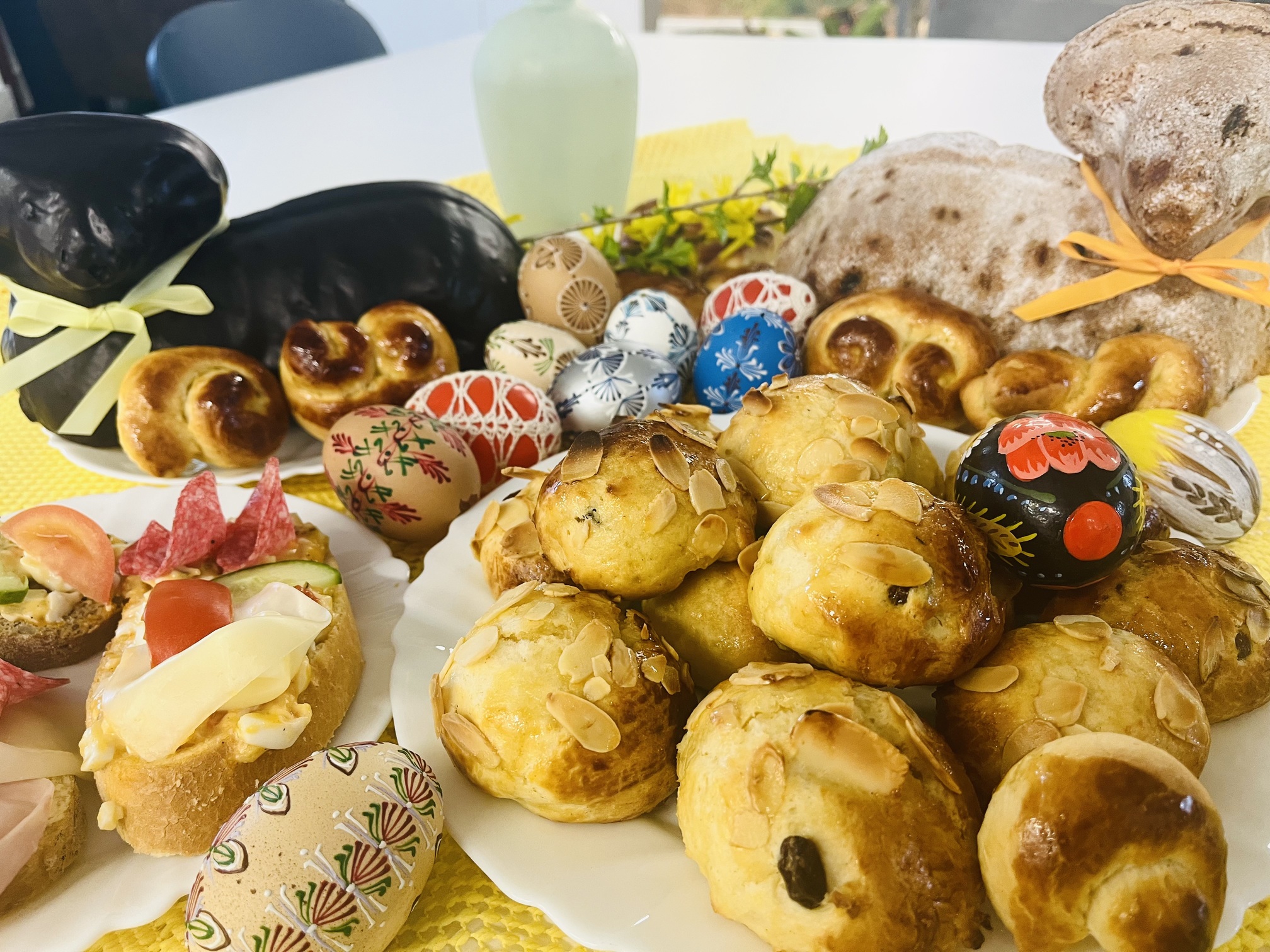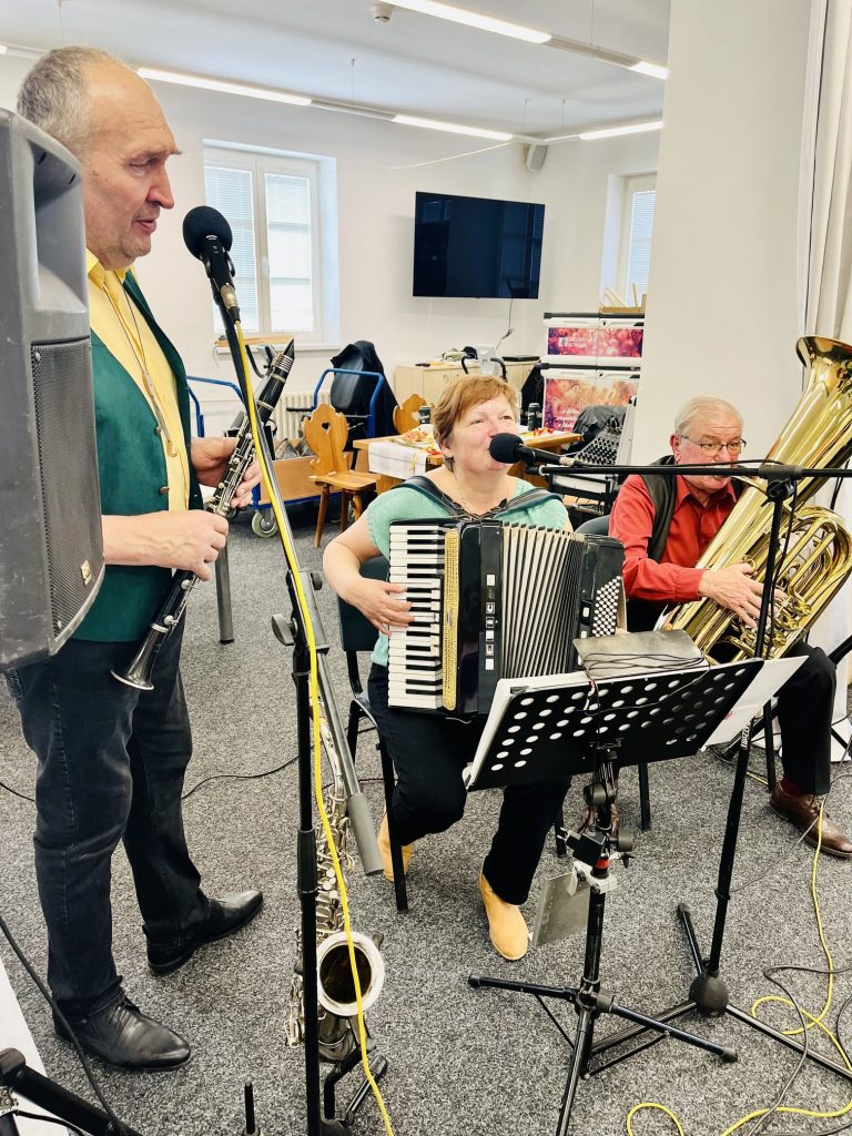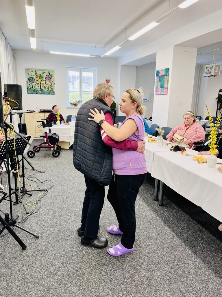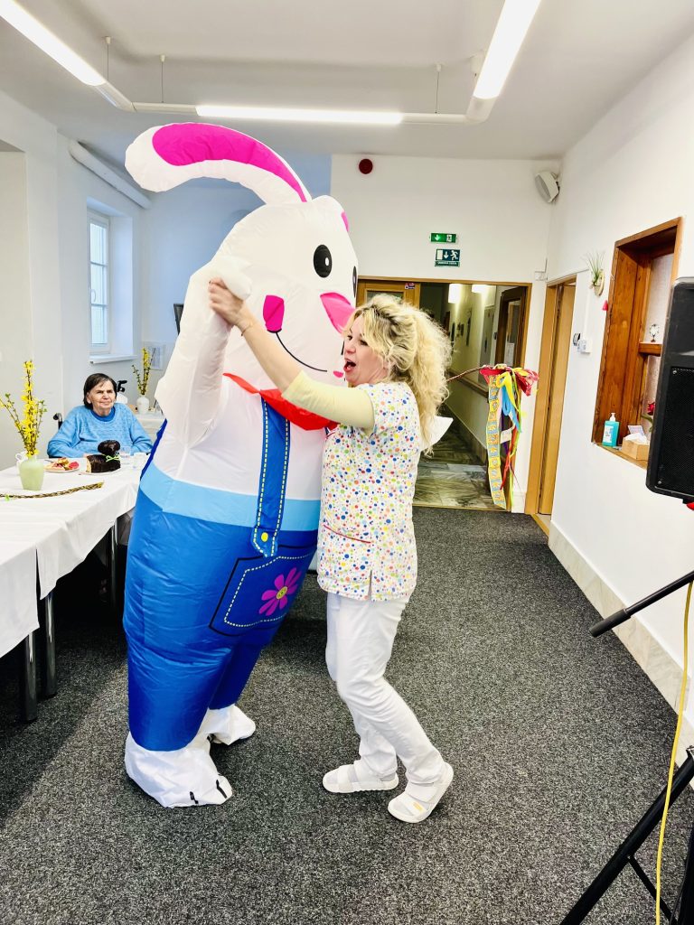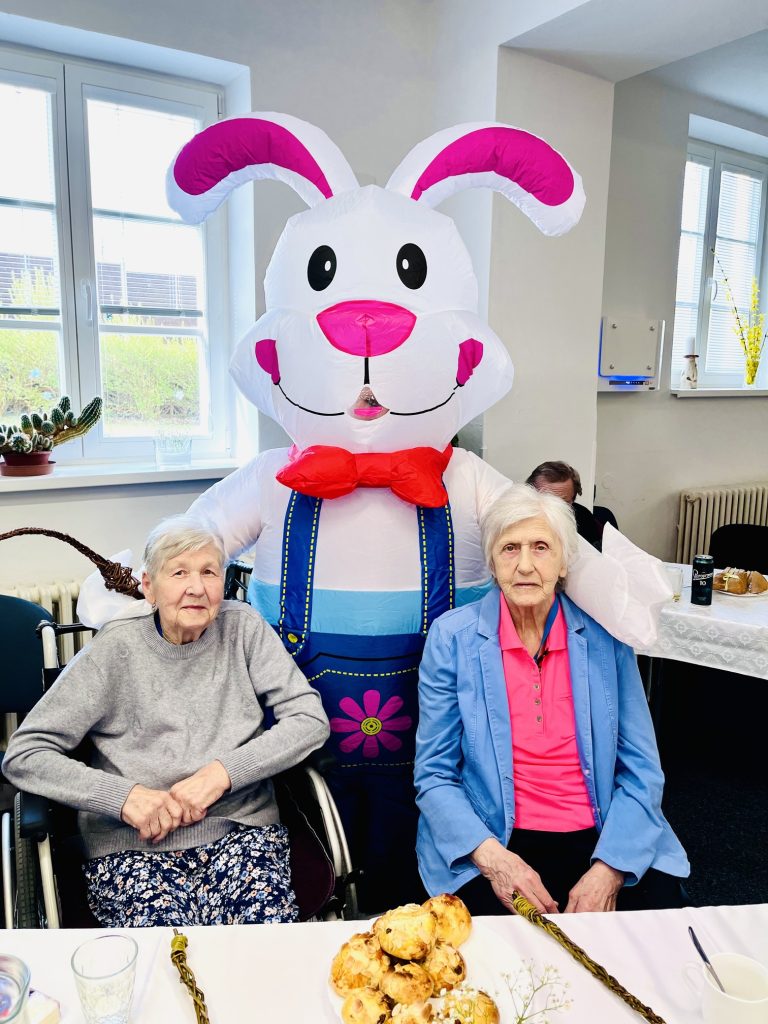 Velikonoce jsou svátky jara a tradic. I letos jsme je v našem domově oslavili tak, jak se patří – s dobrou muzikou, vlastnoručně vyrobenými dobrotami a úsměvem na tváři. Přípravy začaly ve čtvrtek dopoledne, kdy se naši klienti pustili do pečení jidášů, které provonělo celý domov. O pravou sváteční atmosféru se odpoledne postarala kapela Písecká čtyřka. Dalším zpestřením zábavy byla návštěva velikonočního zajíce, který mezi nás nečekaně přihopsal. Rozdal spoustu radosti, vykouzlil úsměvy na tvářích a stal se hlavní hvězdou mnoha společných fotografií.