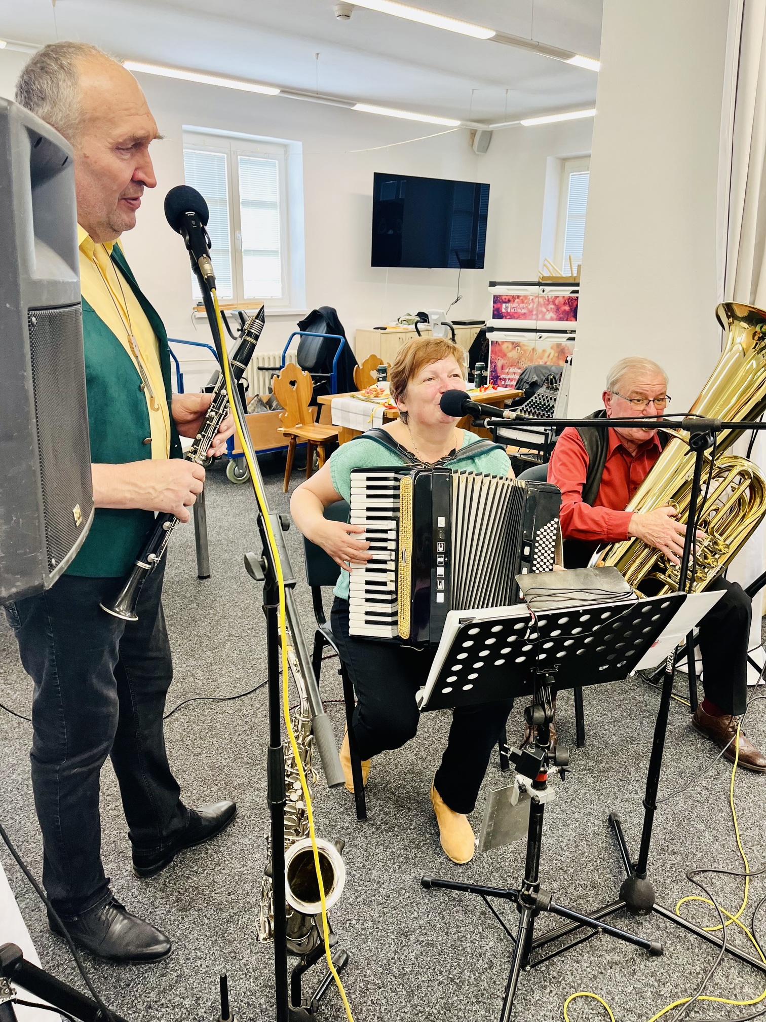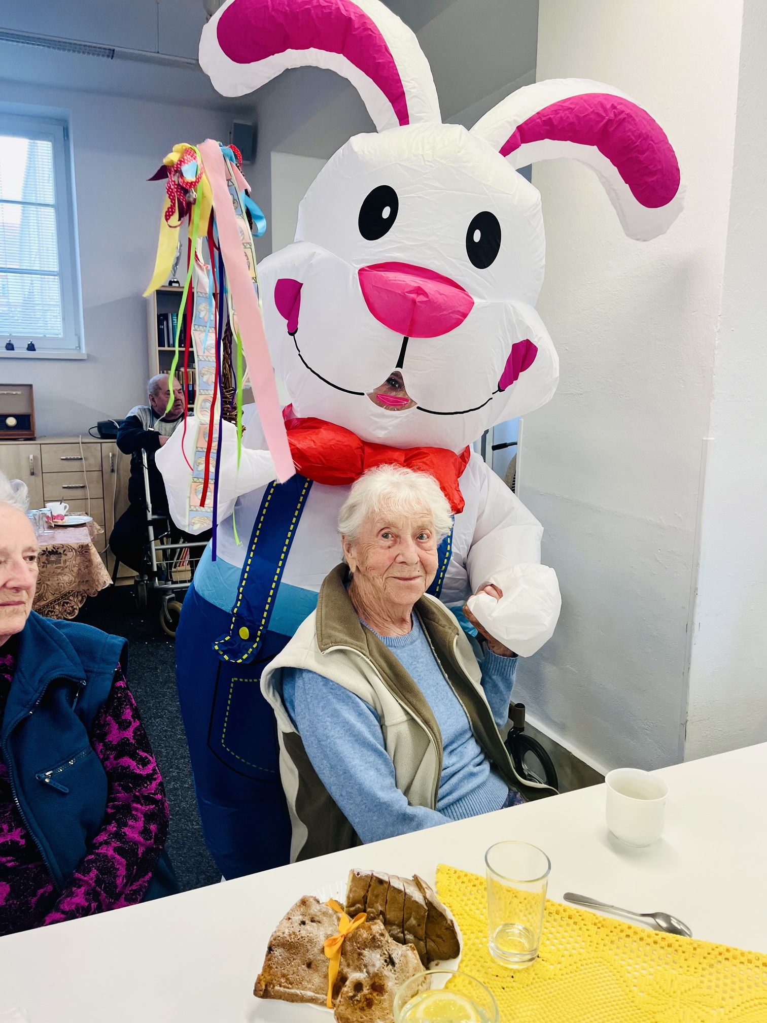 Velikonoce jsou svátky jara a tradic. I letos jsme je v našem domově oslavili tak, jak se patří – s dobrou muzikou, vlastnoručně vyrobenými dobrotami a úsměvem na tváři. Přípravy začaly ve čtvrtek dopoledne, kdy se naši klienti pustili do pečení jidášů, které provonělo celý domov. O pravou sváteční atmosféru se odpoledne postarala kapela Písecká čtyřka. Dalším zpestřením zábavy byla návštěva velikonočního zajíce, který mezi nás nečekaně přihopsal. Rozdal spoustu radosti, vykouzlil úsměvy na tvářích a stal se hlavní hvězdou mnoha společných fotografií.