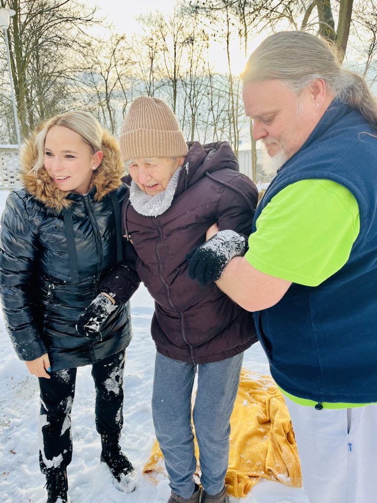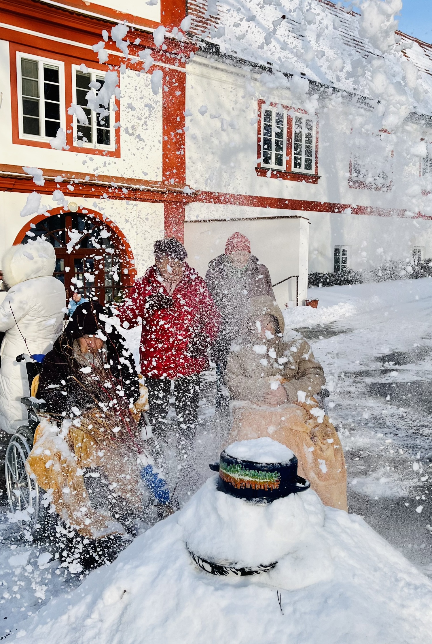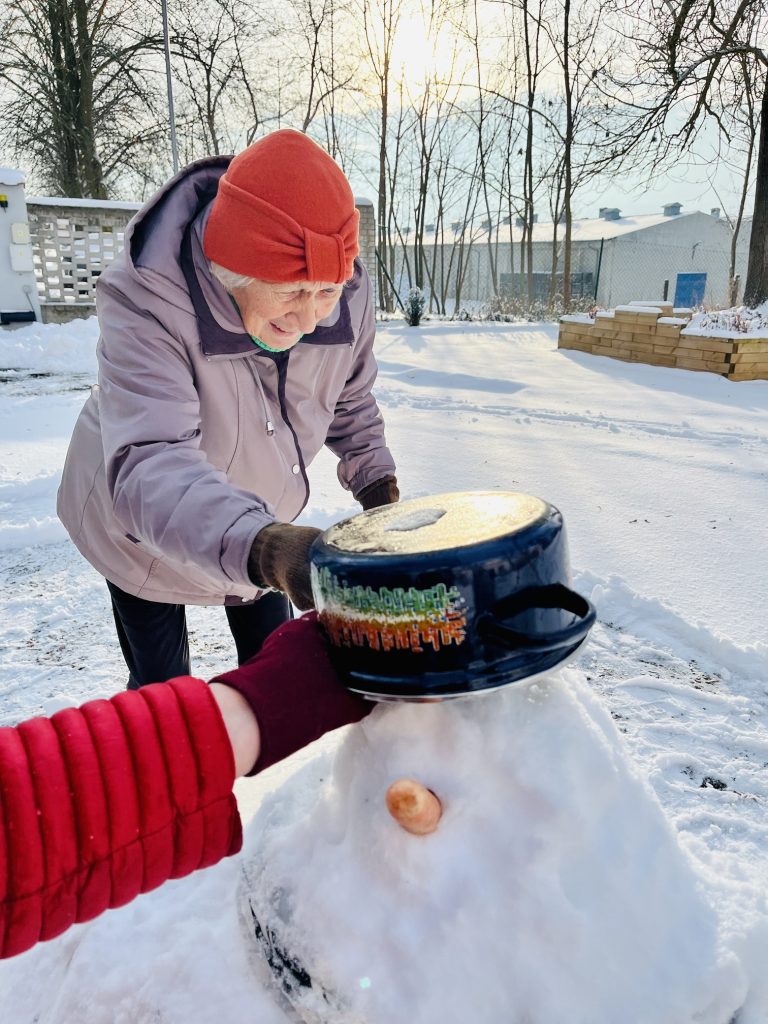 O tom, že zimní radovánky neznají věk, jsme se dnes odpoledne přesvědčili v našem domově v Drhovli. Dnešní ráno a dopoledne nás provázelo husté chumelení, které krajinu pokrylo vrstvou čerstvého prašanu. Rozhodli jsme se toho tedy využít a vyrazili jsme ven spolu s našimi seniory. Nejprve jsme společnými silami postavili sněhuláka. Byla skvělé sledovat, jak si to všichni užívají. Smích se rozléhal zahradou a na chvíli jsme se vrátili do období, kdy jsme byli dětmi. Největší veselí způsobil moment, kdy jsme si vyzkoušeli dělat sněžné anděly. Mávání rukama ve sněhu vykouzlilo všem úsměv na tváři, radost byla stejně upřímná, jakou mají děti.
