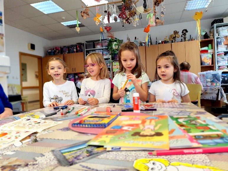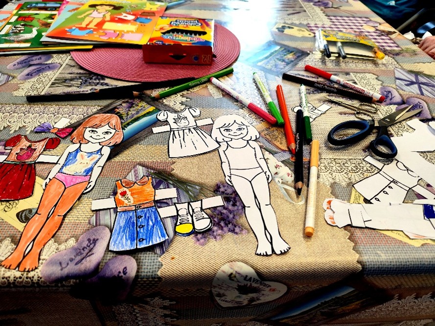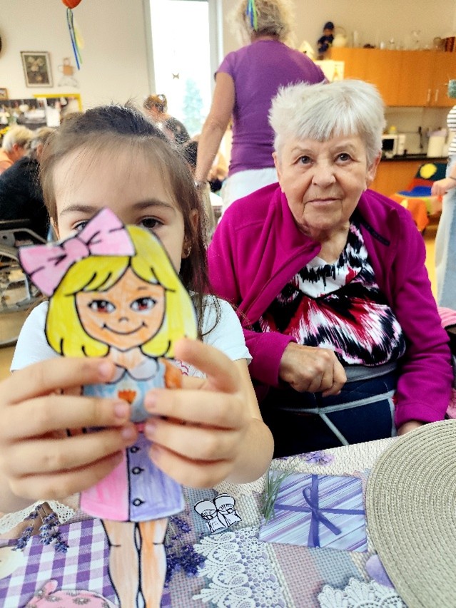 Máme tu nový měsíc a s ním i další mezigenerační setkání s dětmi z MŠ T. Šobra z Písku. Na dnešní téma „Jak se oblékaly naše babičky a jaké nosily barvy oděvů“, jsme si pro děti připravili vystřihovánky postaviček a oblečky na ně. Šest malých návrhářů stříhalo, vybarvovalo, lepilo a zdobilo panenky pomocí papírových šatů, bot, mašlí atd. Strávili jsme dopoledne kreativními a příjemnými činnostmi, při kterých nás navštívila i koordinátorka projektu, Markéta Dušková. Písnička na rozloučenou nesměla chybět a my se již nyní těšíme se na příští setkání s dětmi.