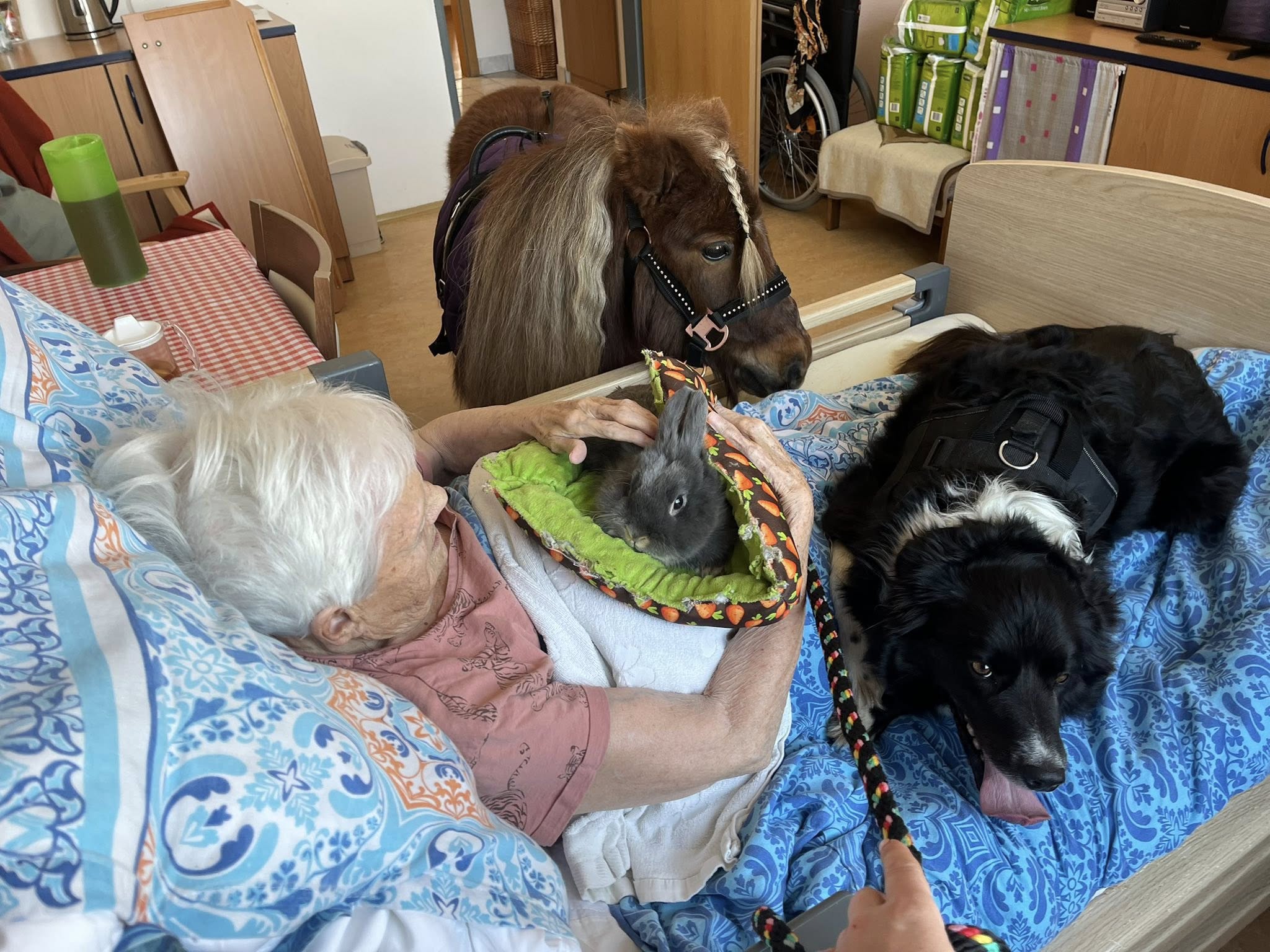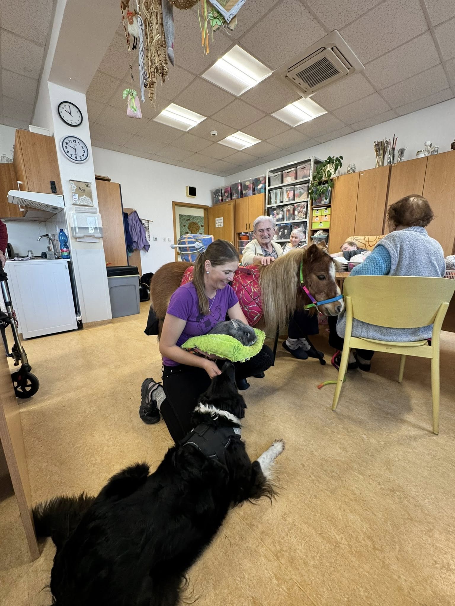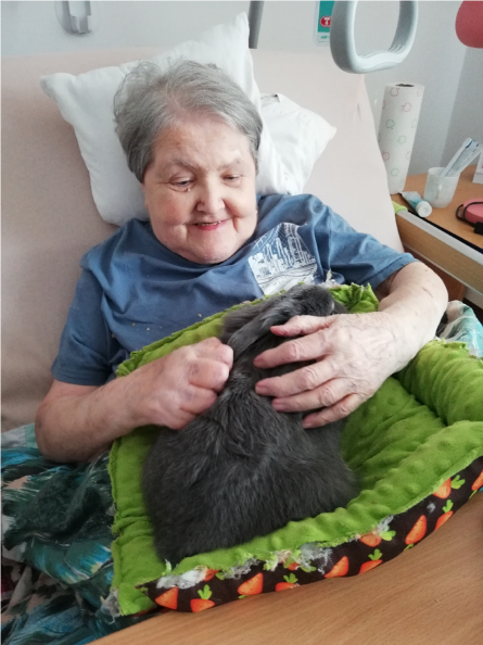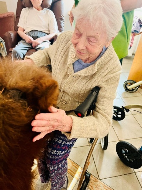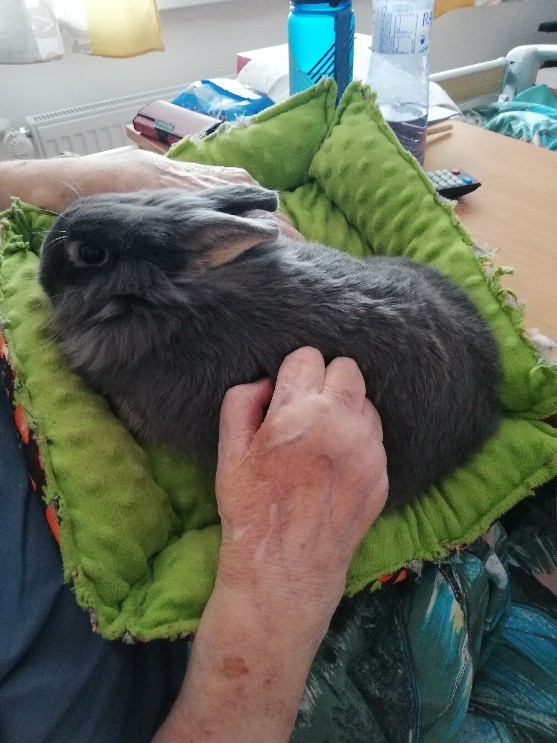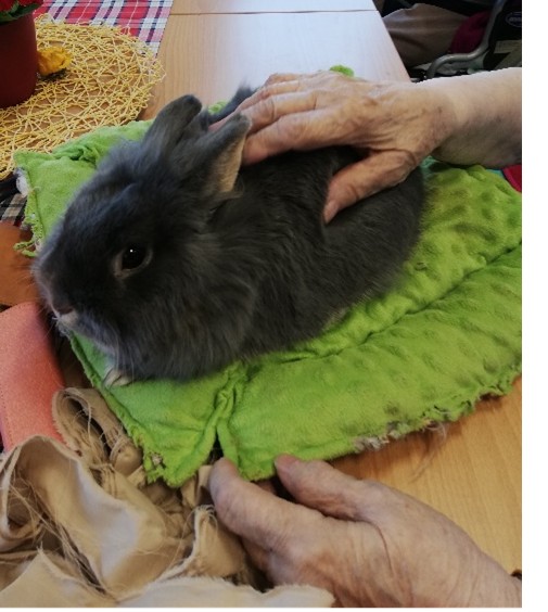 Se zvířaty se s radostí pomazlili nejen klienti přítomní v aktivizační dílně nebo ve společenské místnosti, ale i ti, kteří se společenských aktivit nezúčastňují. Zejména tito lidé ocení zpestření, které jim zvířátka dávají. Už jenom pohlazení měkkého, teplého kožíšku přináší radost a uvolnění.