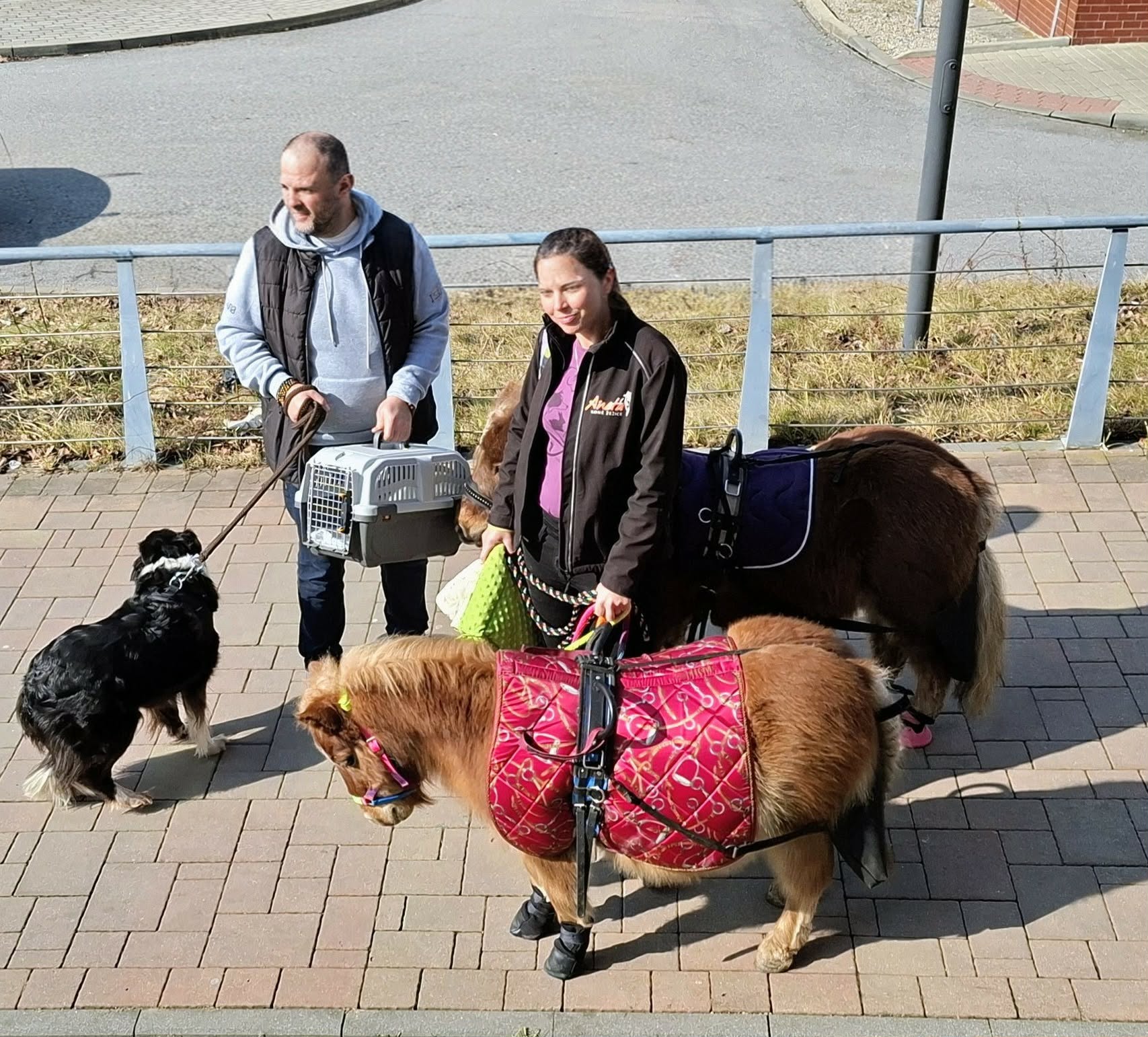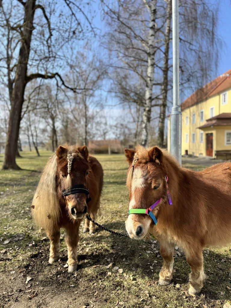 Přijeli opravdu v hojném počtu – dva poníci – David a Oskar, fenka Jamie a dva terapeutičtí králíčci.