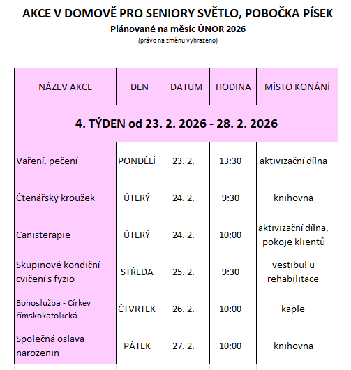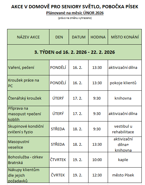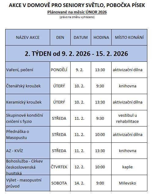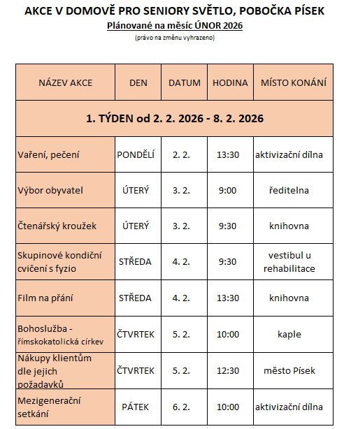 PÍSEK: AKCE V ÚNORU 2026
