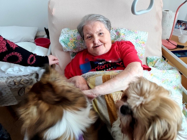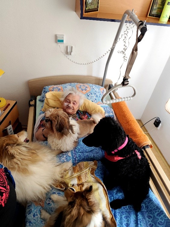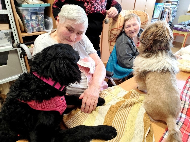 Do našeho domova opět 24. 2. zavítala milá návštěva – canisterapeutka se svými čtyřmi pejsky Megi, Kájou, Blaženkou a Bonim. Setkání proběhlo v aktivizační dílně i přímo na pokojích klientů, aby si radost ze zvířecí společnosti mohli užít opravdu všichni.