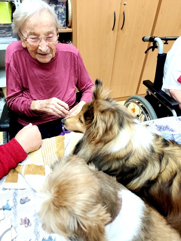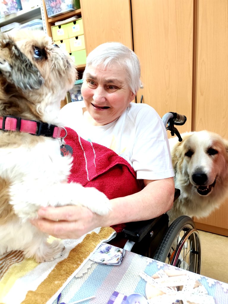 V úterý 23. 9. 25 jsme v našem domově opět přivítali milou zvířecí návštěvu. Psí mazlíčci Kája, Bony a Megí přišli, společně se svojí paničkou, potěšit naše klienty. Jako obyčejně měli u všech klientů velkým úspěch a my se již nyní těšíme se na další návštěvu.