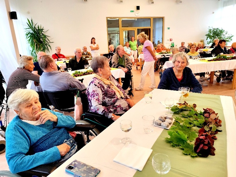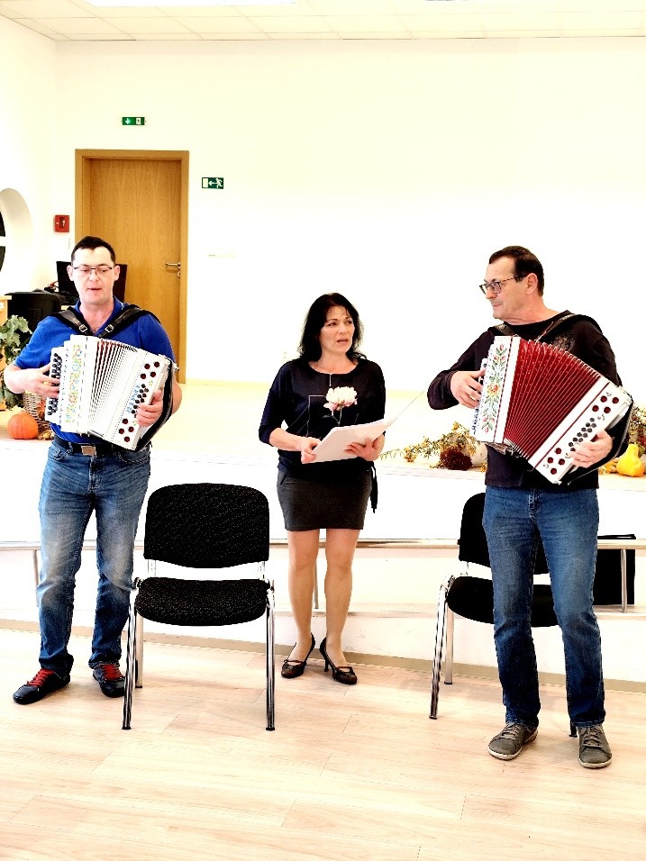 Dne 16. 10. 2025 jsme pro naše klienty uspořádali Havelské posezení s harmonikou. K poslechu nám přijel zahrát pan Bican, námi velmi oblíbený harmonikář. K občerstvení se tentokrát podávaly párky s hořčicí a chlebem, krásně ozdobené hnětynky, koblihy a káva. Pan Bican nás opět přesvědčil o tom, že harmonika je hudební nástroj, na který lze zahrát snad cokoliv… Klienti si zazpívali, v sále panovala skvělá a pohodová atmosféra a všichni odcházeli v dobré náladě.
