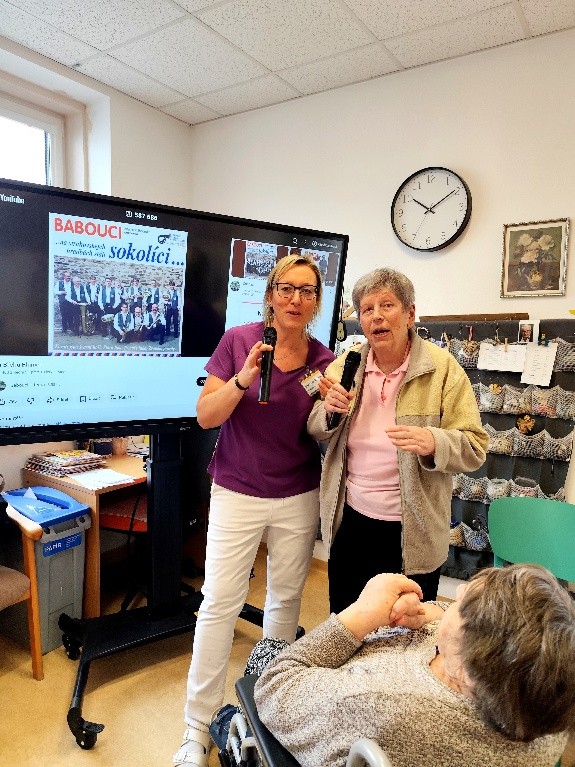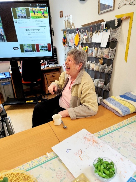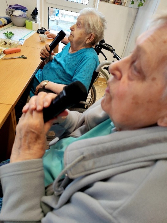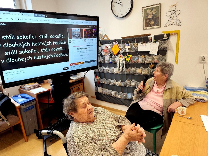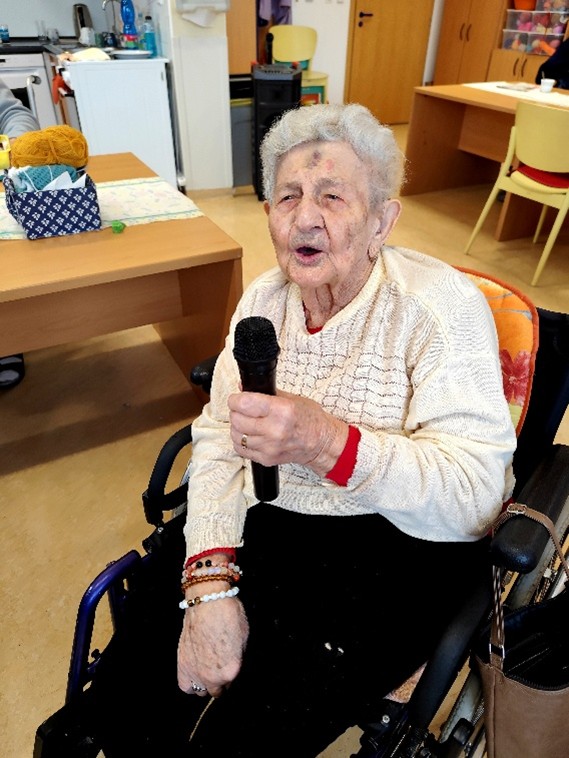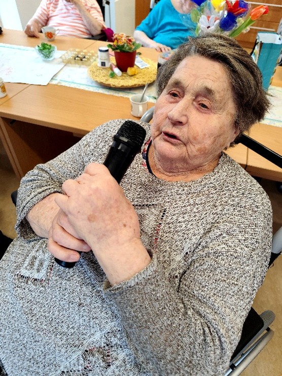 Dnes 12. března jsme v aktivizační dílně poprvé vyzkoušeli karaoke. Pro mnohé to byla úplně nová zkušenost, ale hned od začátku panovala veselá a příjemná atmosféra.