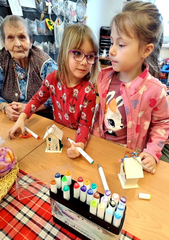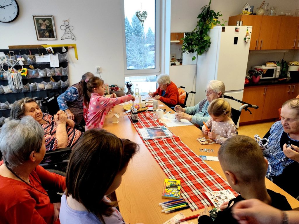 V pátek 9. ledna 2026 proběhlo další z oblíbených setkání dětí a seniorů. Pro děti jsme si připravili dřevěné foťáčky, které si měly vybarvit a ozdobit barevnými třpytkami. Dopoledne jsme si užili v pohodové náladě a setkání se stalo hezkým zpestřením všedního dne i milou příležitostí k setkání.