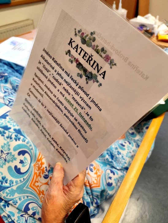 Smyslová aktivizace pod vedením Lenky Chvátalové, aktivizační praktikantky Konceptu