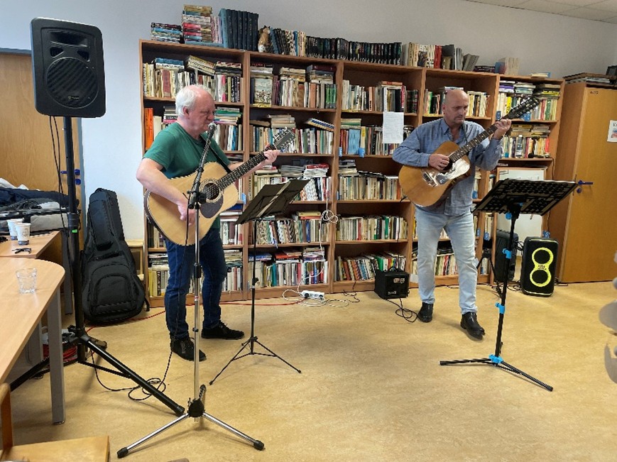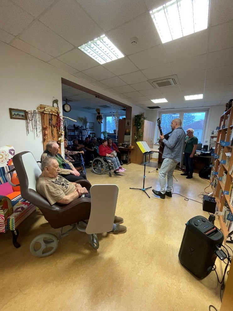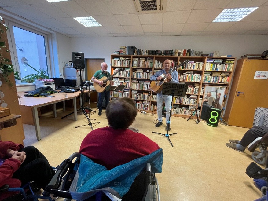 V sobotu 13. 12. se v píseckém domově uskutečnilo vánočně laděné vystoupení, které klientům zpříjemnilo adventní čas. Pan Ivo Schön a pan Karel Pecl si pro přítomné připravili hudební program, během něhož zahráli na kytary a zazpívali známé i méně známé vánoční písně.