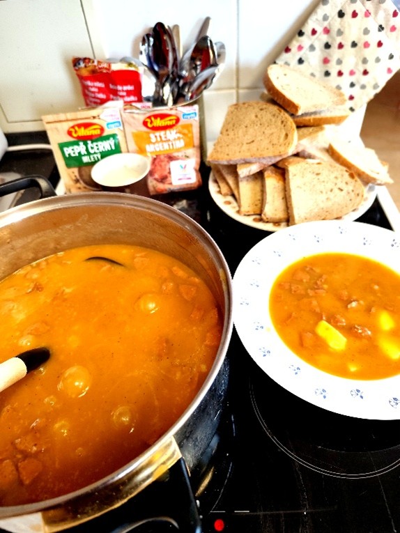 V pondělí 6.10. jsme se s klienty opět sešli v aktivizační dílně na společném vaření. Tentokrát jsme se pustili do přípravy „buřtguláše“.