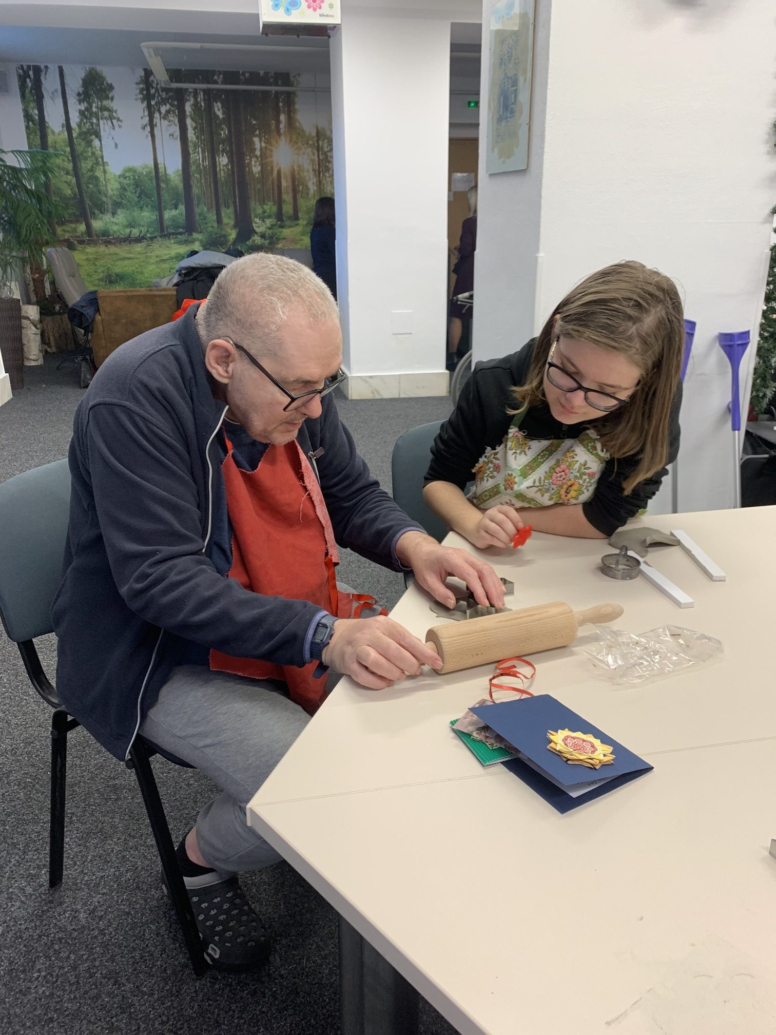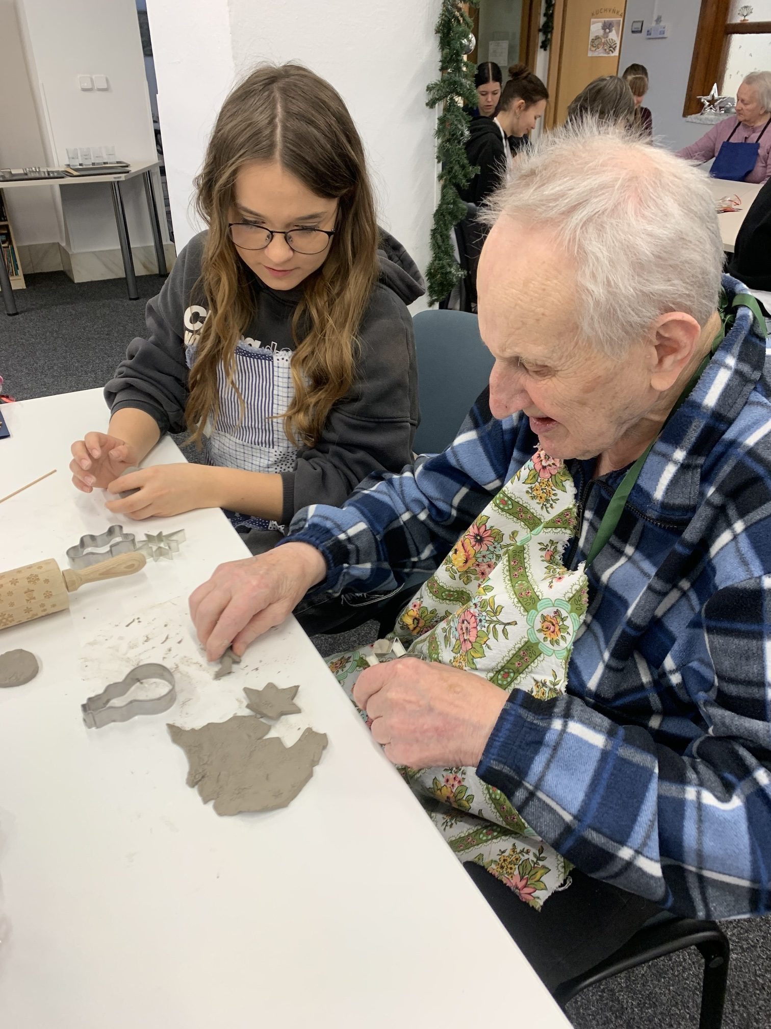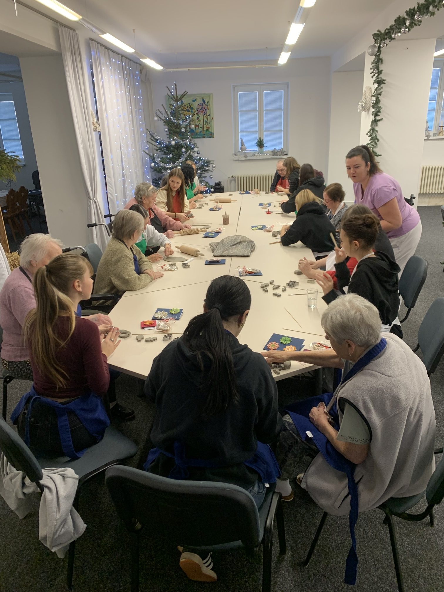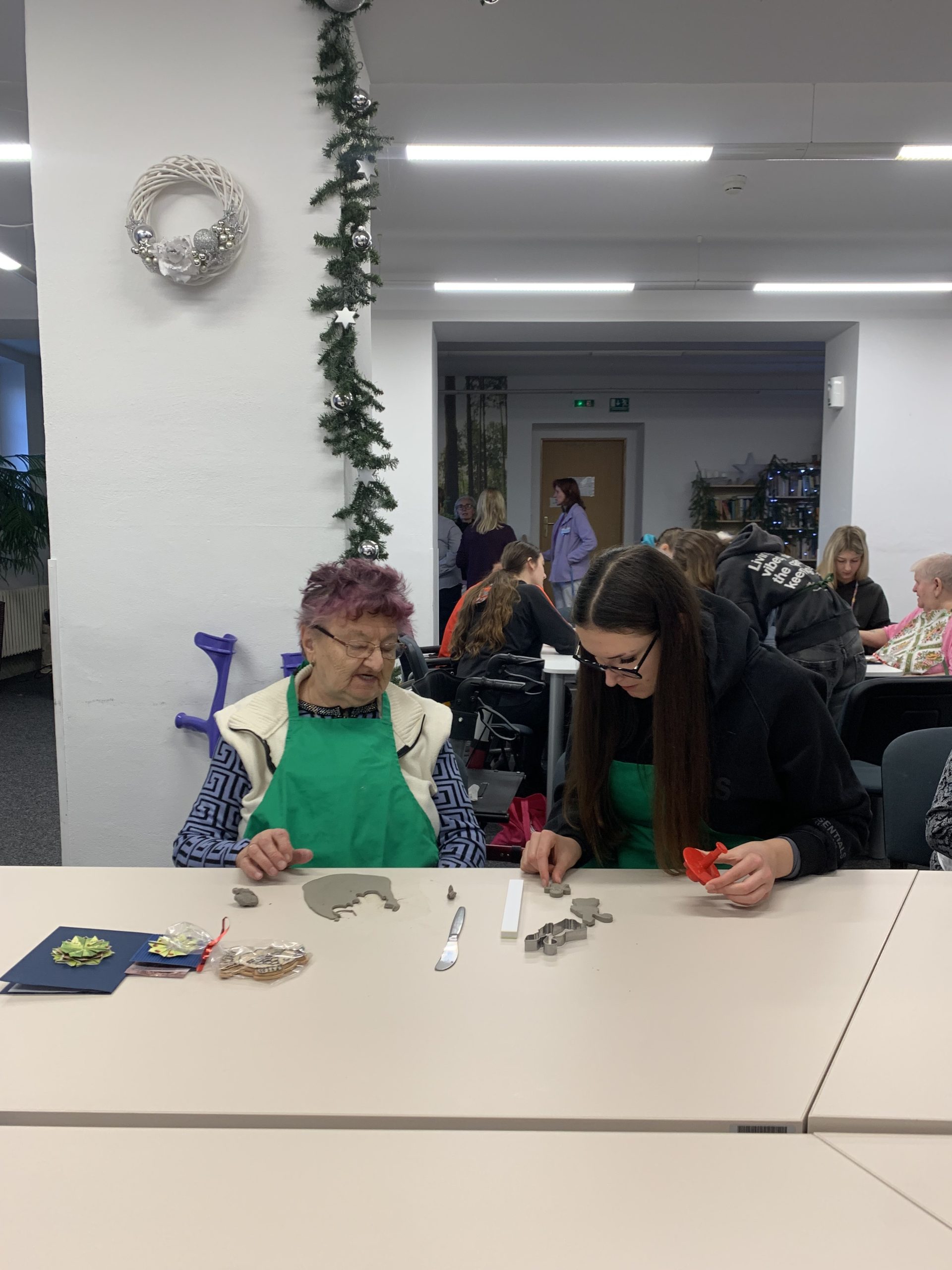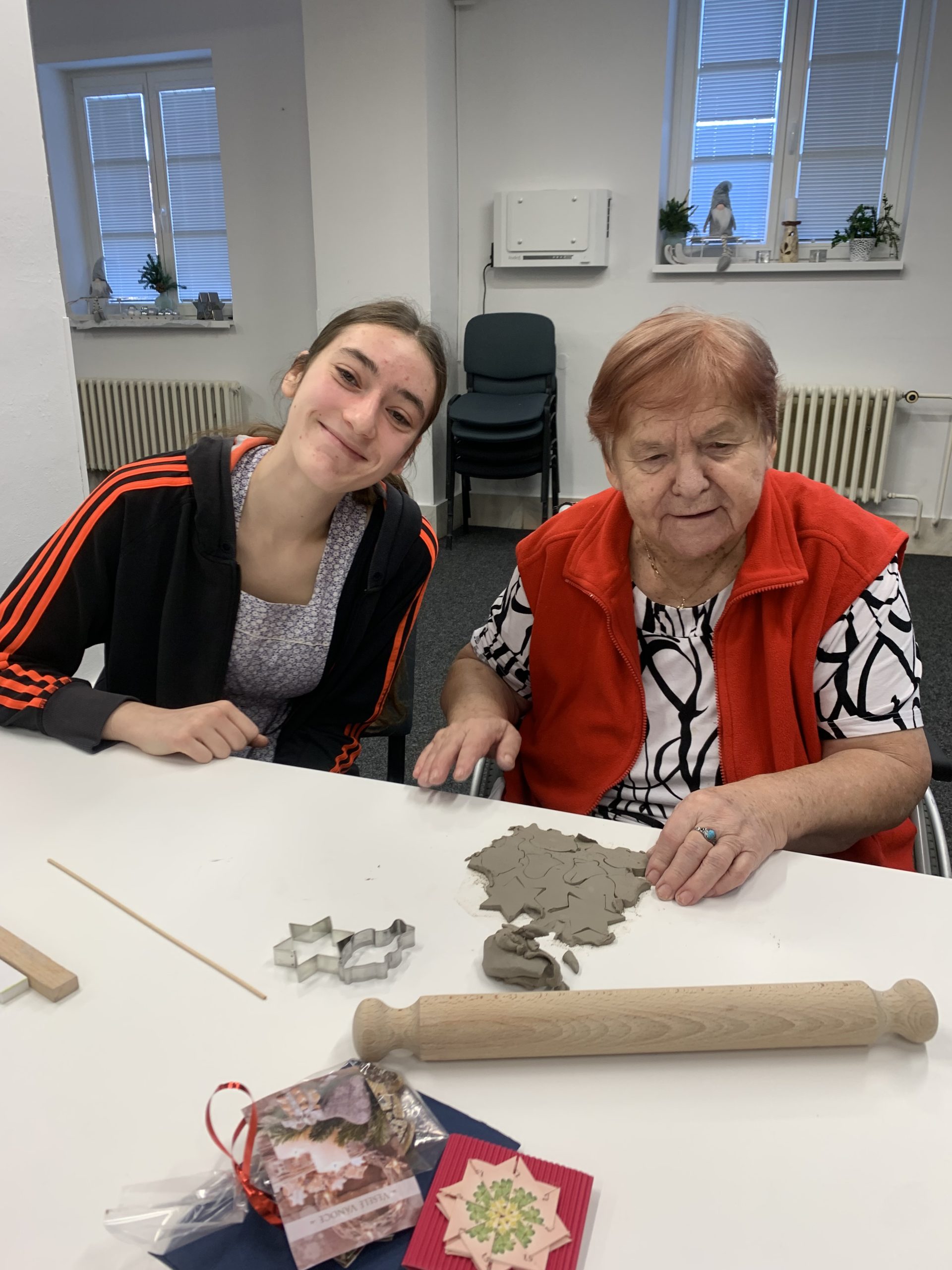 V úterý 9. prosince se v předvánočním čase v našem domově uskutečnilo milé setkání studentů a seniorů. Dopoledne u nás totiž strávily studentky ze Střední školy a Jazykové školy s právem státní jazykové zkoušky Volyně. Tentokrát jsme se sešli, abychom společně vytvořili vánoční dekorace z keramické hlíny a předali si navzájem kus sváteční nálady. Studentky našim seniorům udělaly radost krásnými vánočními přáníčky s origami dekoracemi a vánočními rybkami ze sladkého lineckého těsta. Celé dopoledne se neslo v přátelské a tvořivé atmosféře.