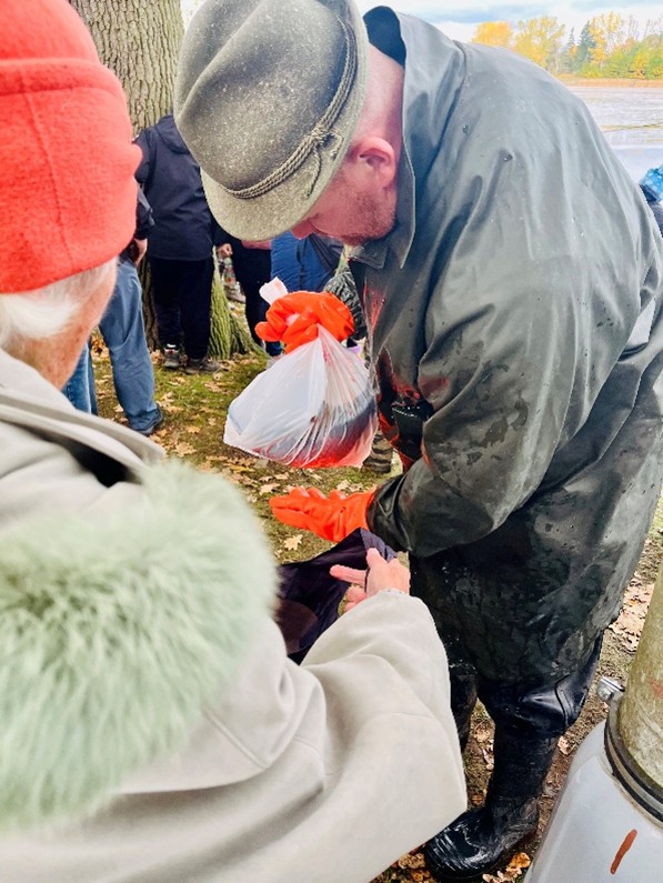 Po příjezdu do Putimi jsme se vydali k rybníku, kde už bylo živo. Klienti s nadšením sledovali celý proces výlovu. Mnozí si zavzpomínali na časy, kdy sami chodívali na podobné akce nebo se výlovů účastnili. Nechybělo ani občerstvení, klienti si dopřáli teplý čaj či grog pro zahřátí i něco dobrého na zub.